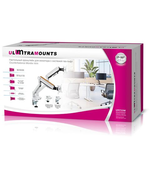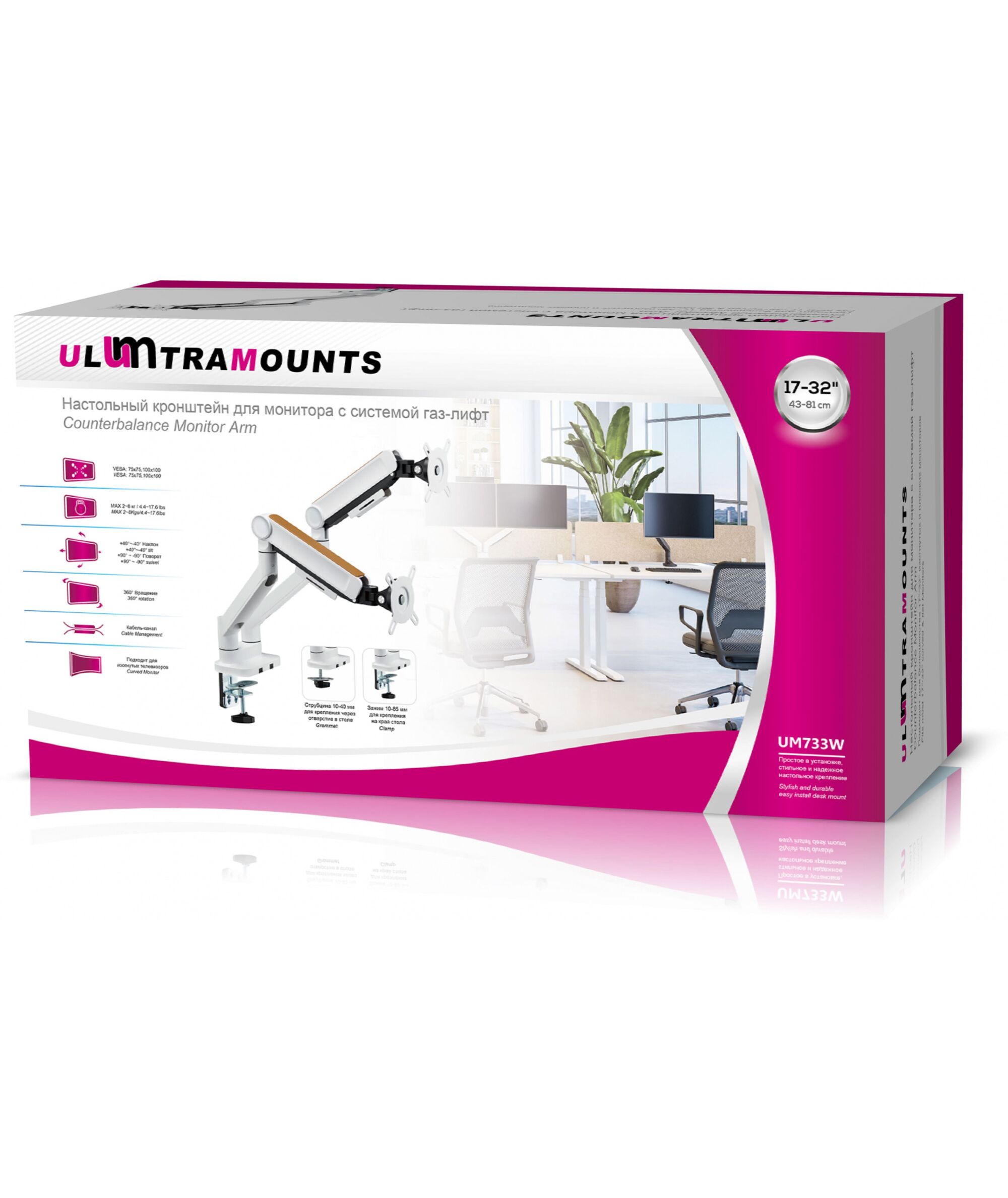Кронштейн для мониторов Ultramounts UM733W белый 17-32 макс.8кг настольный поворот и наклон