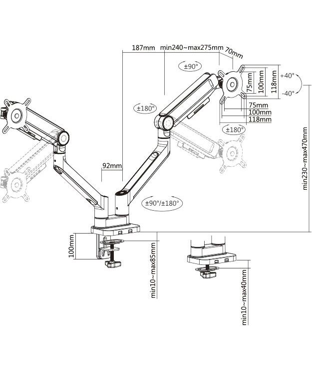 | Особенности | Плавная регулировка положения монитора обеспечивается благодаря системе газлифтов, а пружинные механизмы равномерно распределяют вес мониторов, предотвращая их перегрузку и возможную деформацию креплений. |