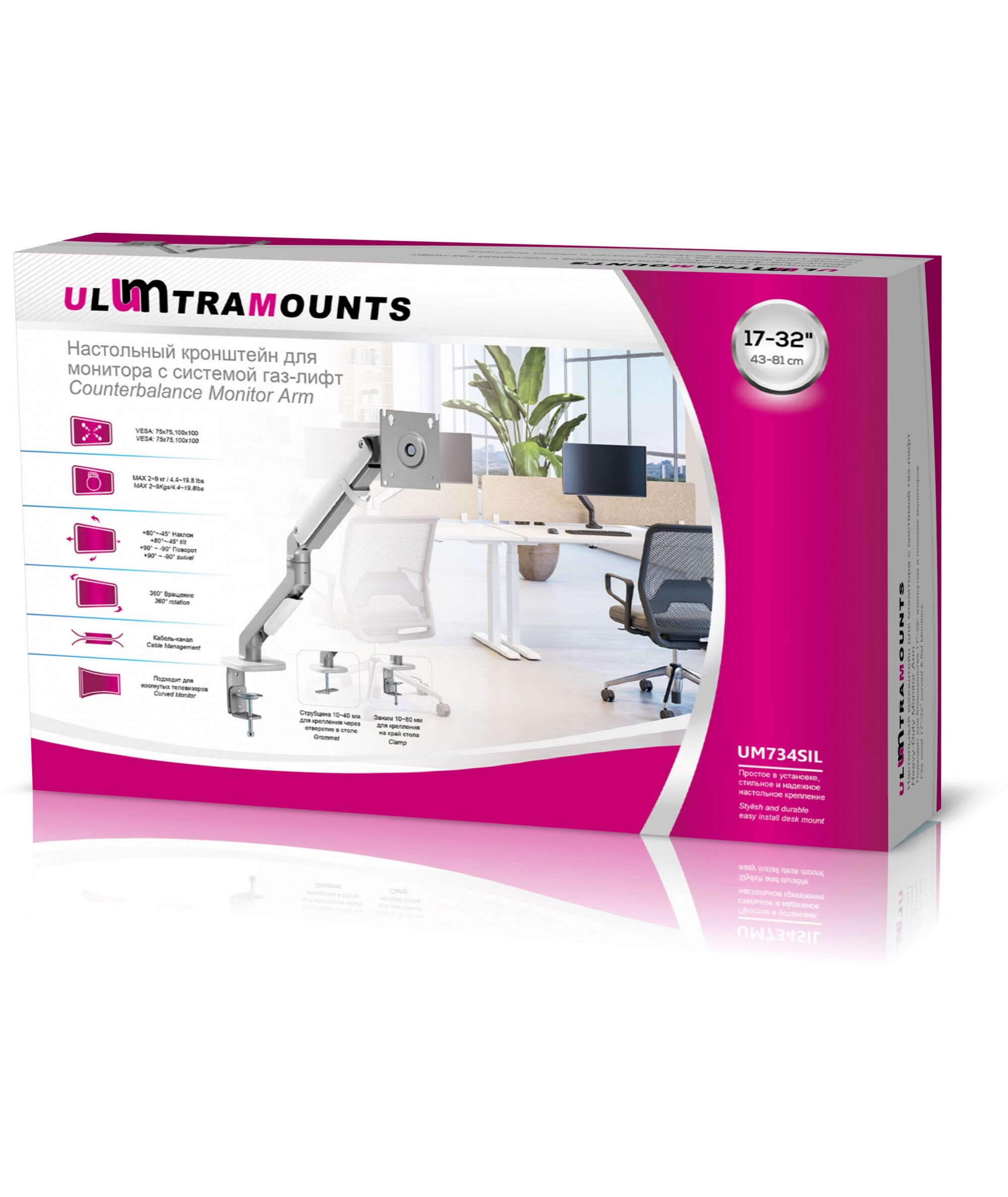 Кронштейн для мониторов Ultramounts UM734SIL серый/серебристый 17"-27" макс.7кг крепление к столешнице поворот и наклон