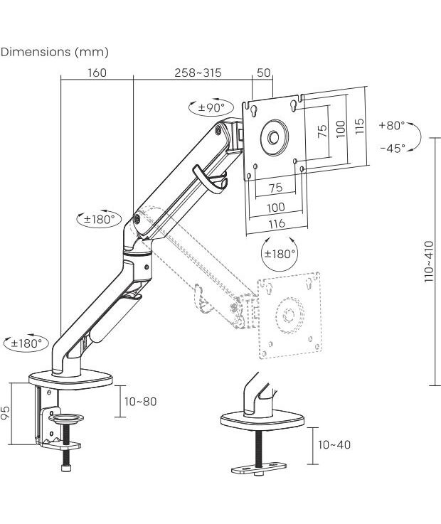 | Особенности | Настольный кронштейн для монитора с системой газ-лифт. Пружинный механизм позволяет легко перемещаться вверх и вниз. |