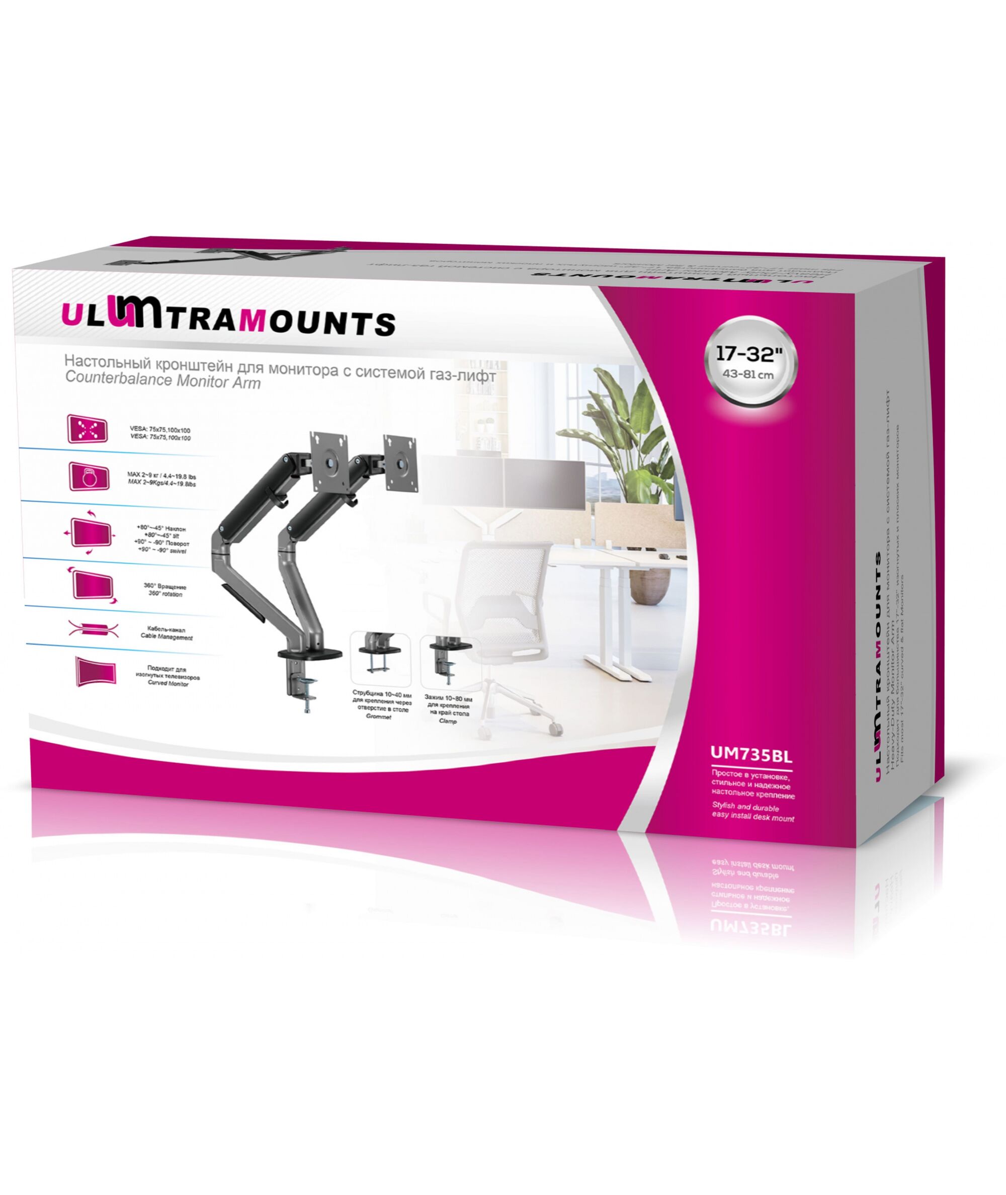 Кронштейн для мониторов Ultramounts UM735BL черный/серый 17-27 макс.7кг крепление к столешнице поворот и наклон