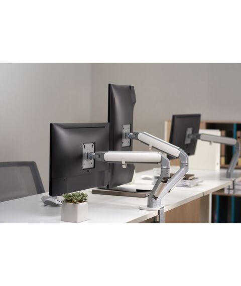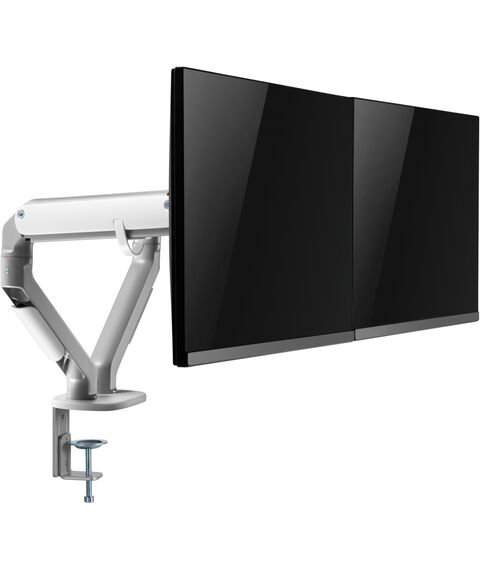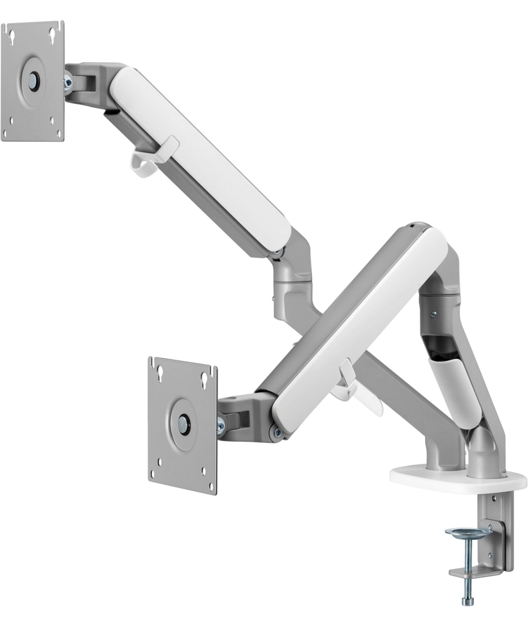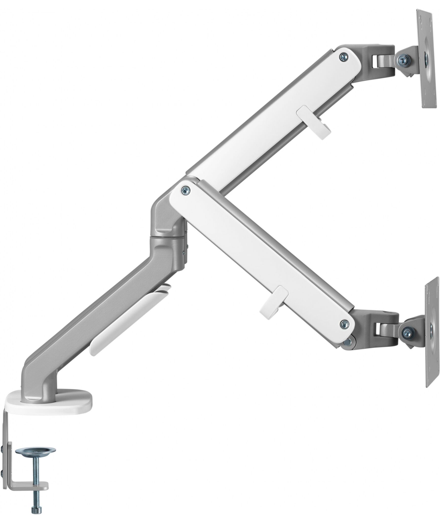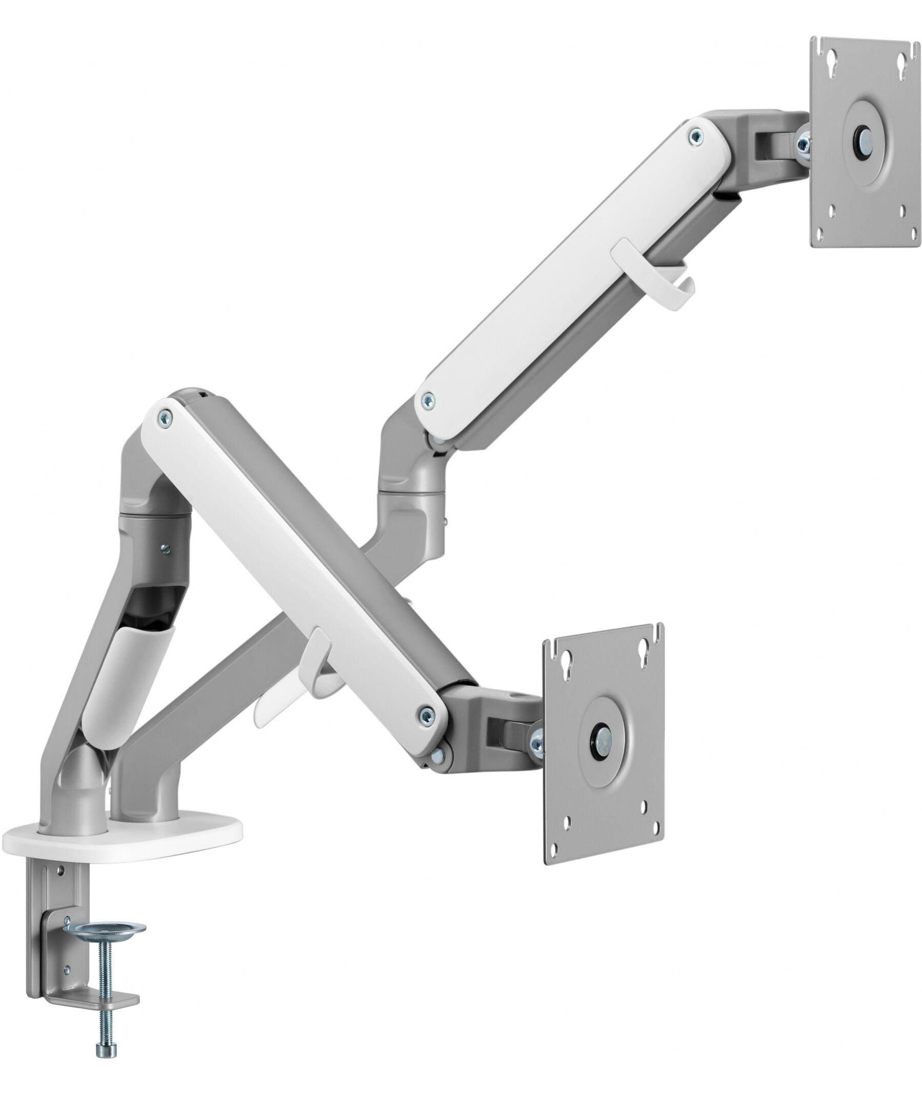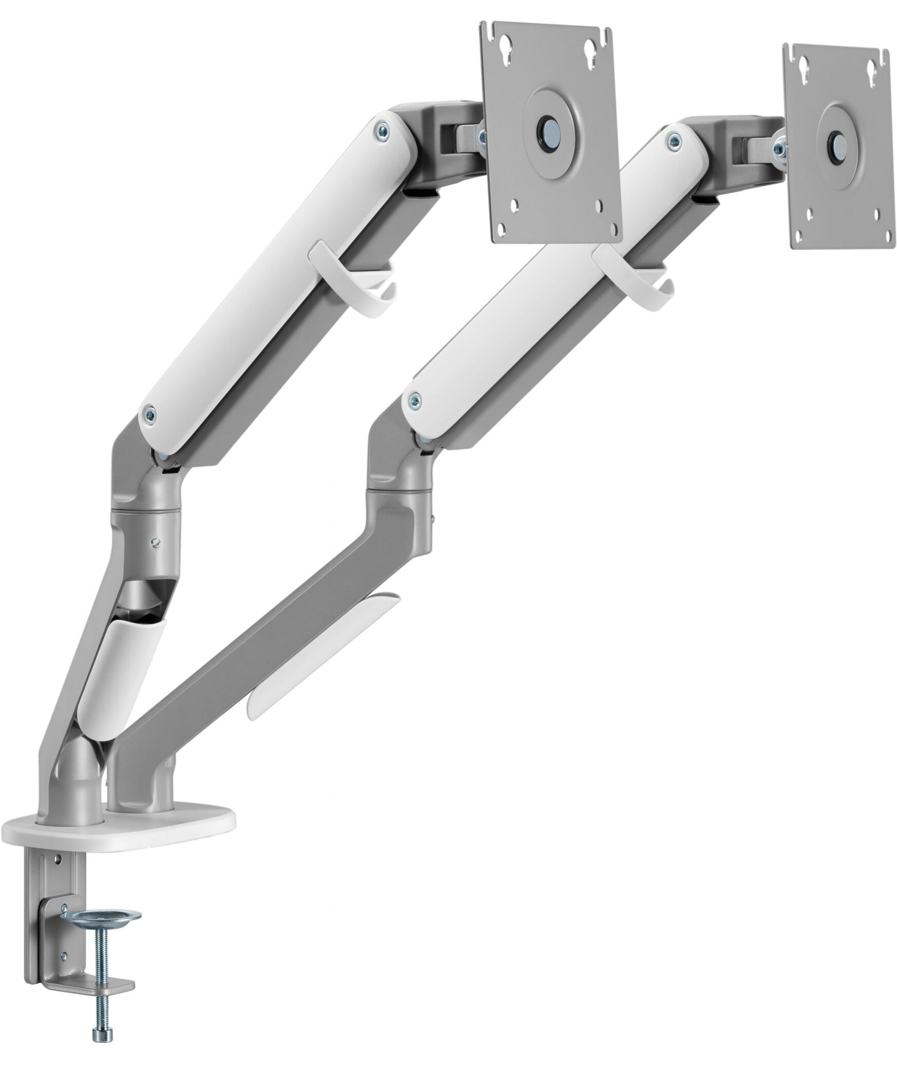 | Особенности | Настольный кронштейн с двумя креплениями под мониторы. Встроенный пружинный механизм натяжения поможет для идеальной регулировки веса. |