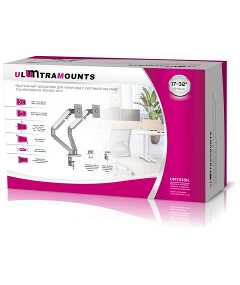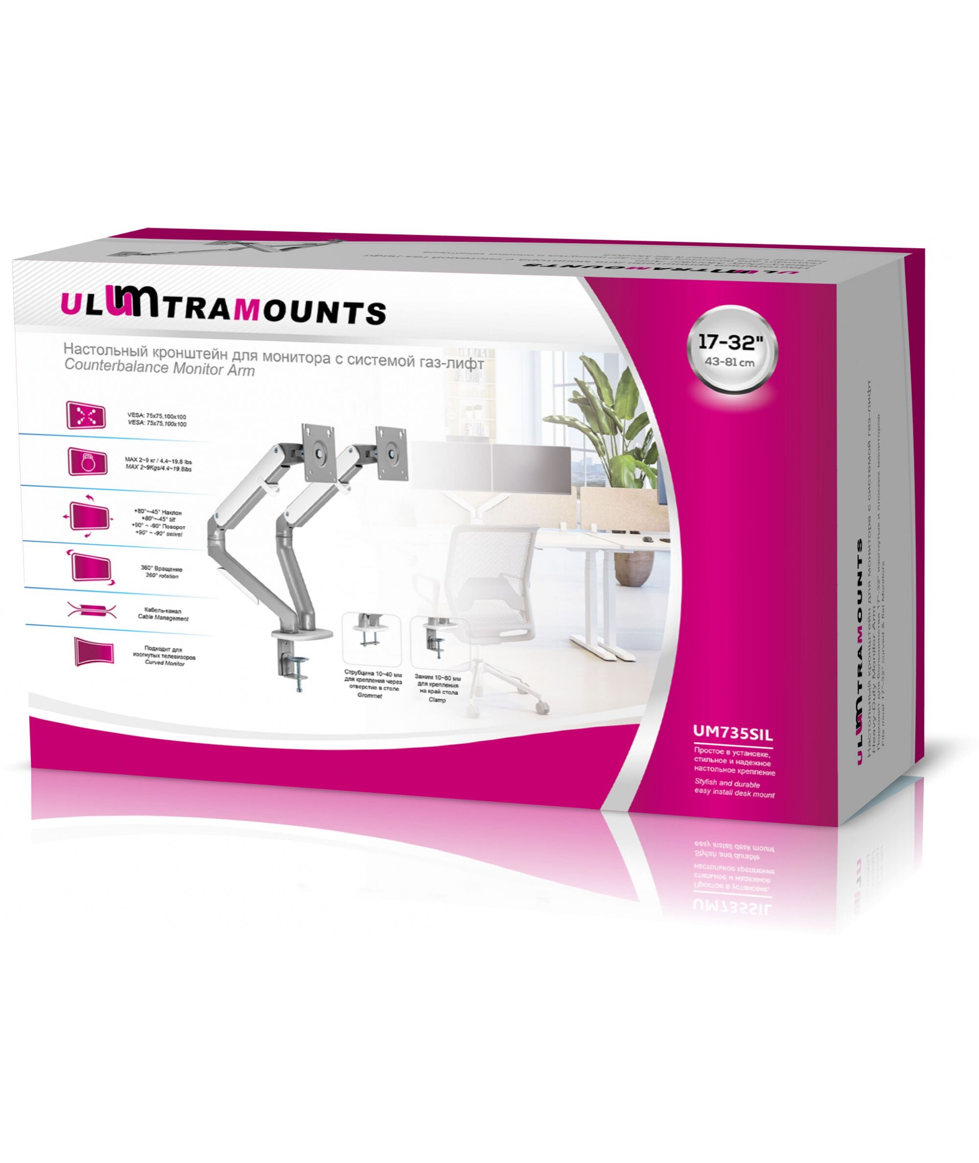 Кронштейн для мониторов Ultramounts UM735SIL серый/серебристый 17-27 макс.7кг крепление к столешнице поворот и наклон