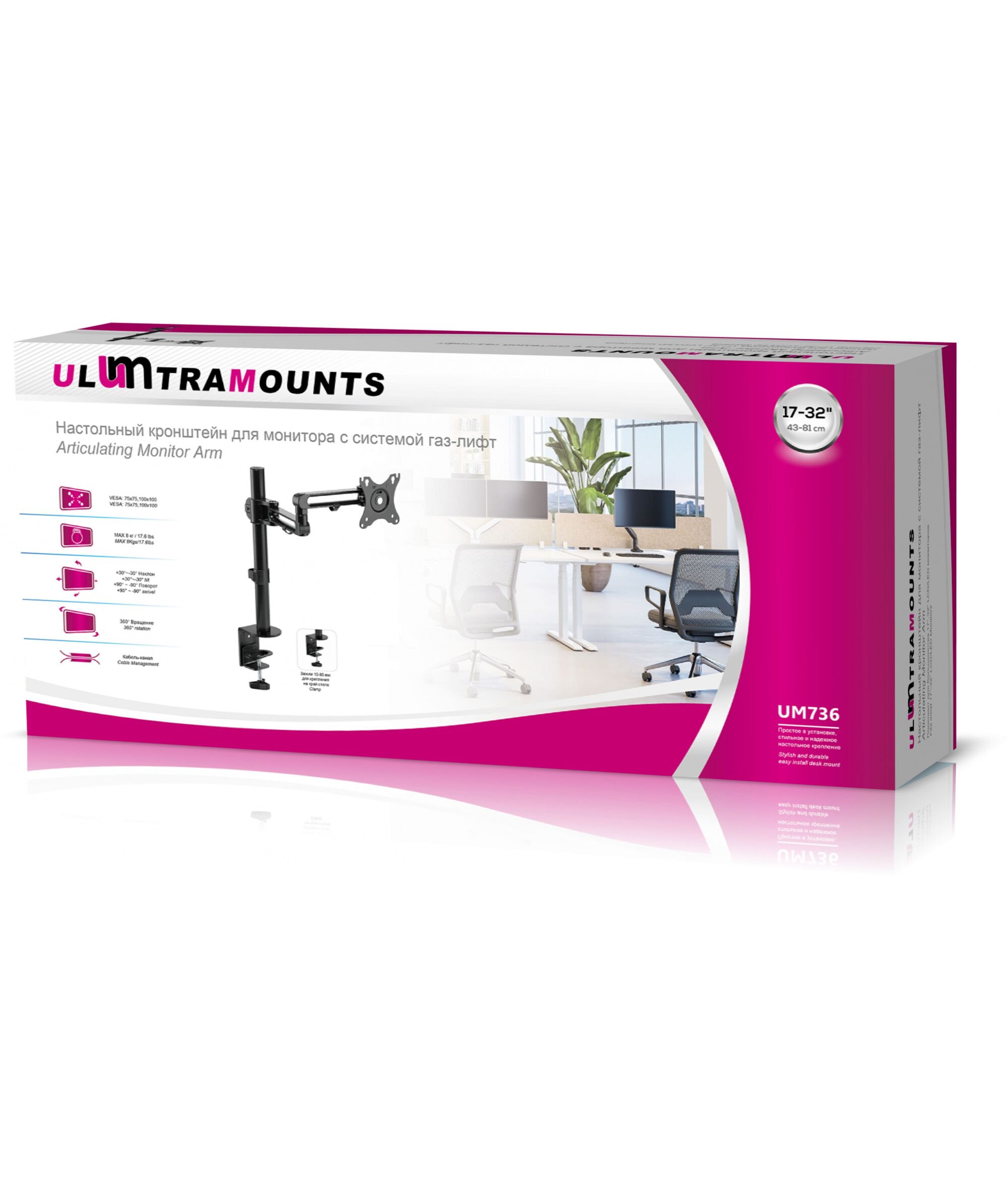 Кронштейн для мониторов Ultramounts UM736 черный 17"-32" макс.8кг крепление к столешнице поворот и наклон