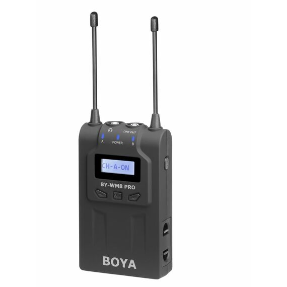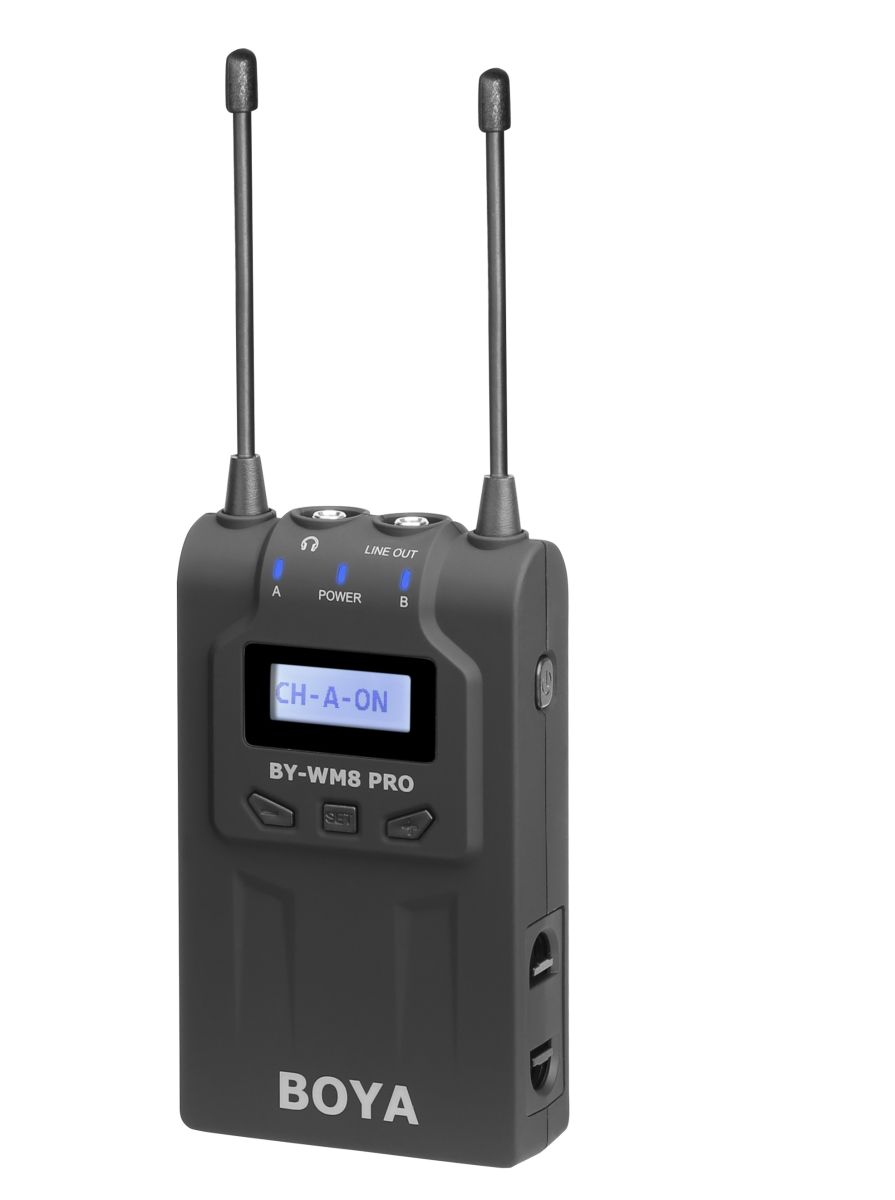 Boya RX8 Pro — это беспроводной приемник для усовершенствованной двухканальной УКВ беспроводной микрофонной системы BOYA BY-WM8 Pro (работает с передатчиками BOYA TX8 Pro и BY-WXLR8 Pro). Система имеет широкий спектр применения: проведение интервью, электронный сбор новостей (ENG), внестудийное видеопроизводство (EFP), кинопроизводство, применение в бизнес и образовательных проектах и многое другое.