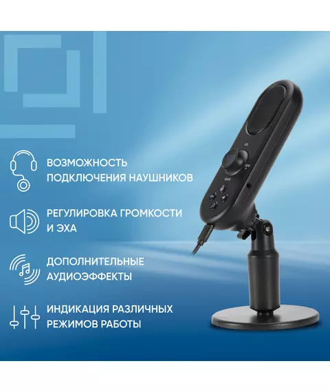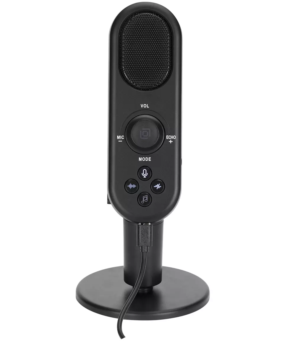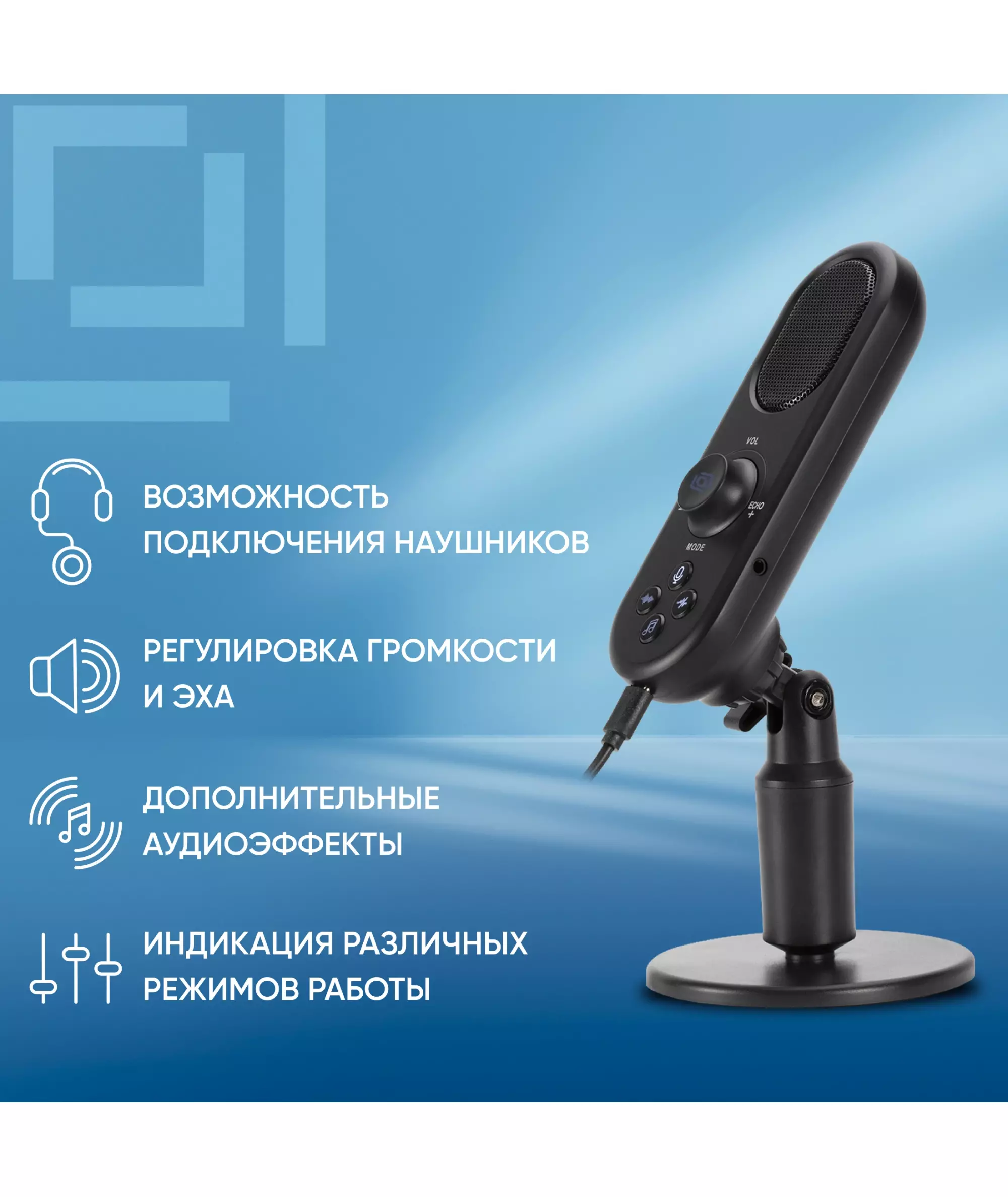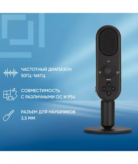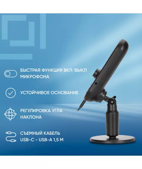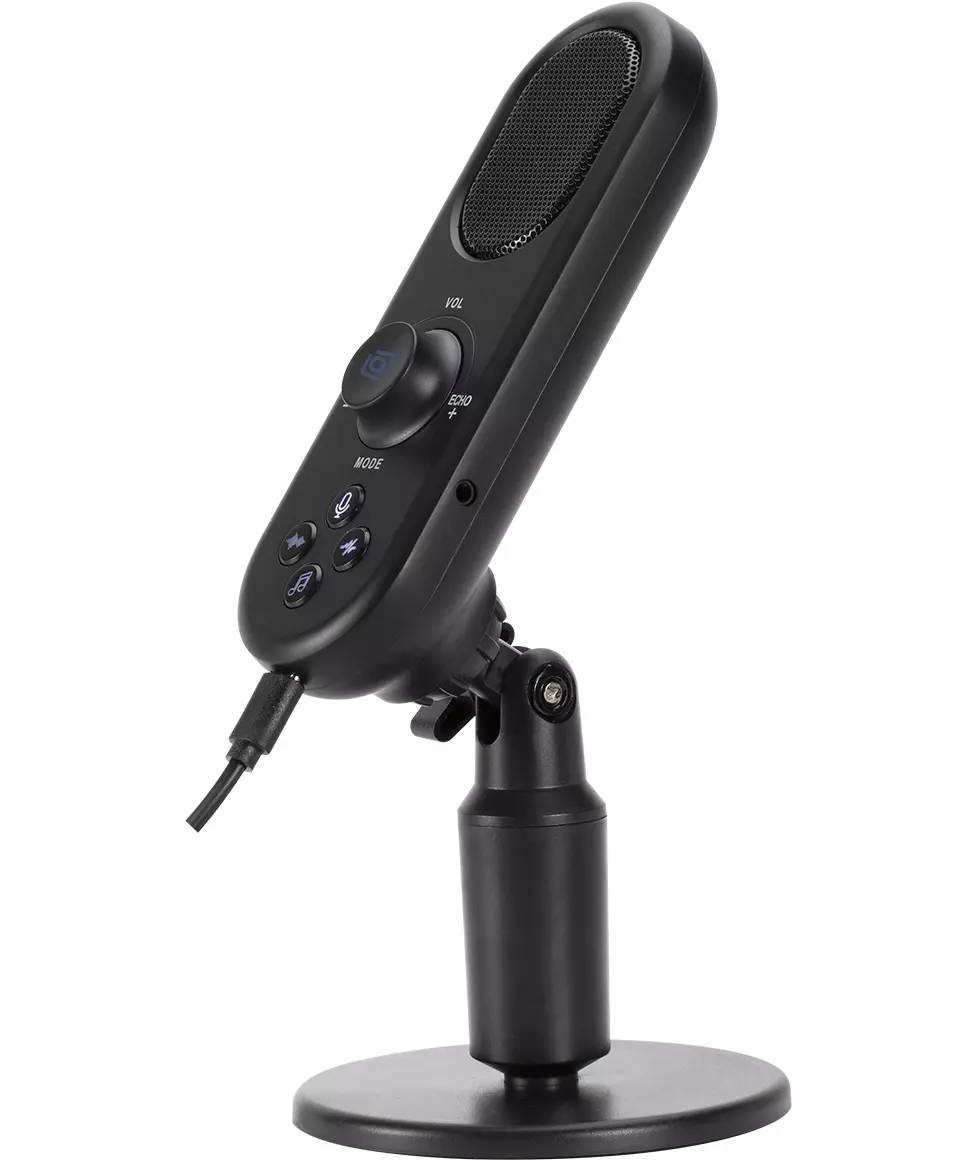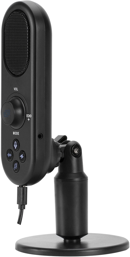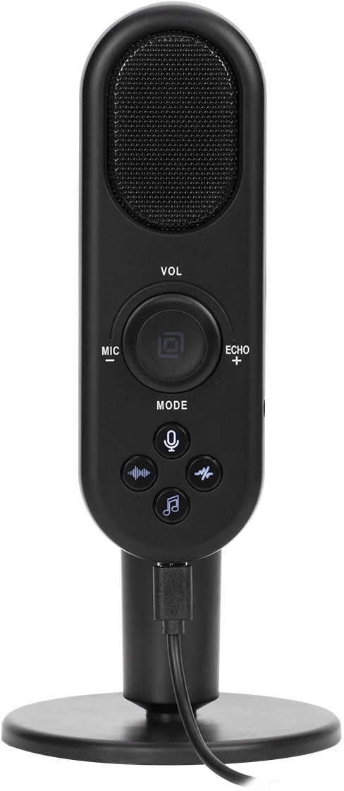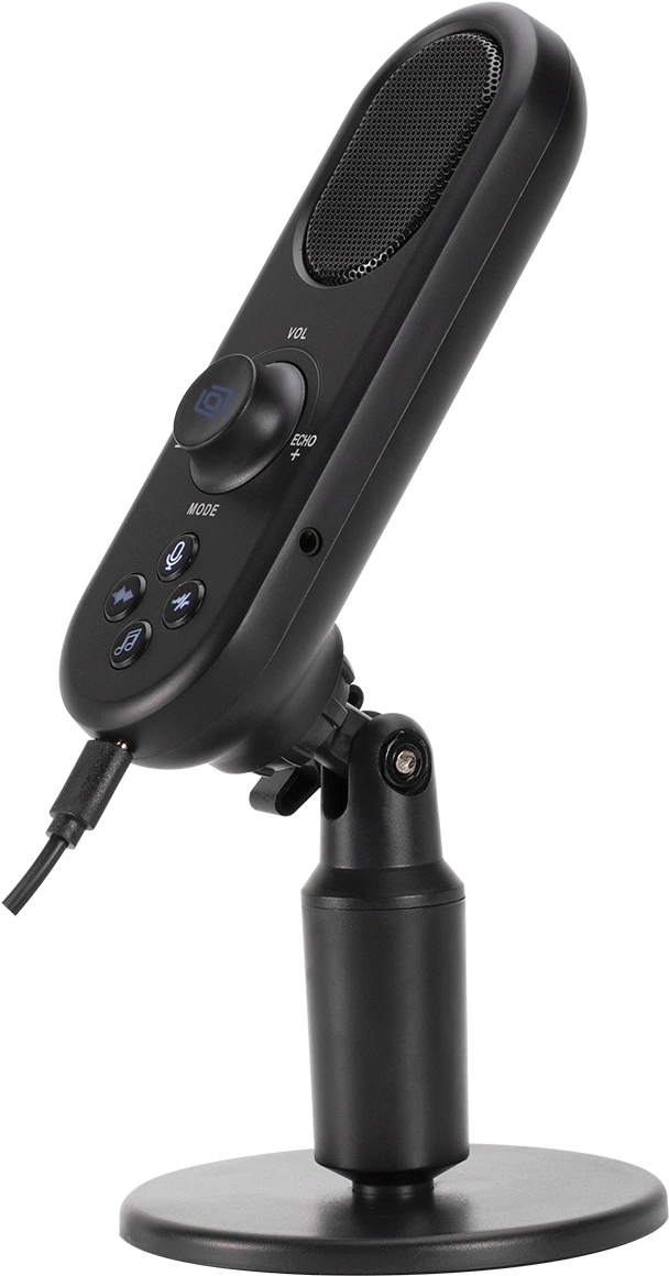 | Особенности | Стильный микрофон на устойчивом основании с возможностью регулировки угла наклона. Кардиоидная диограмма направленности, функция ENC, регулировка громкости, дополнительные аудиоэффекты, дополнительная индикация для различных режимов работы. Совместимость с различными ОС и PS4. Разъемы TRRS, usb-c |