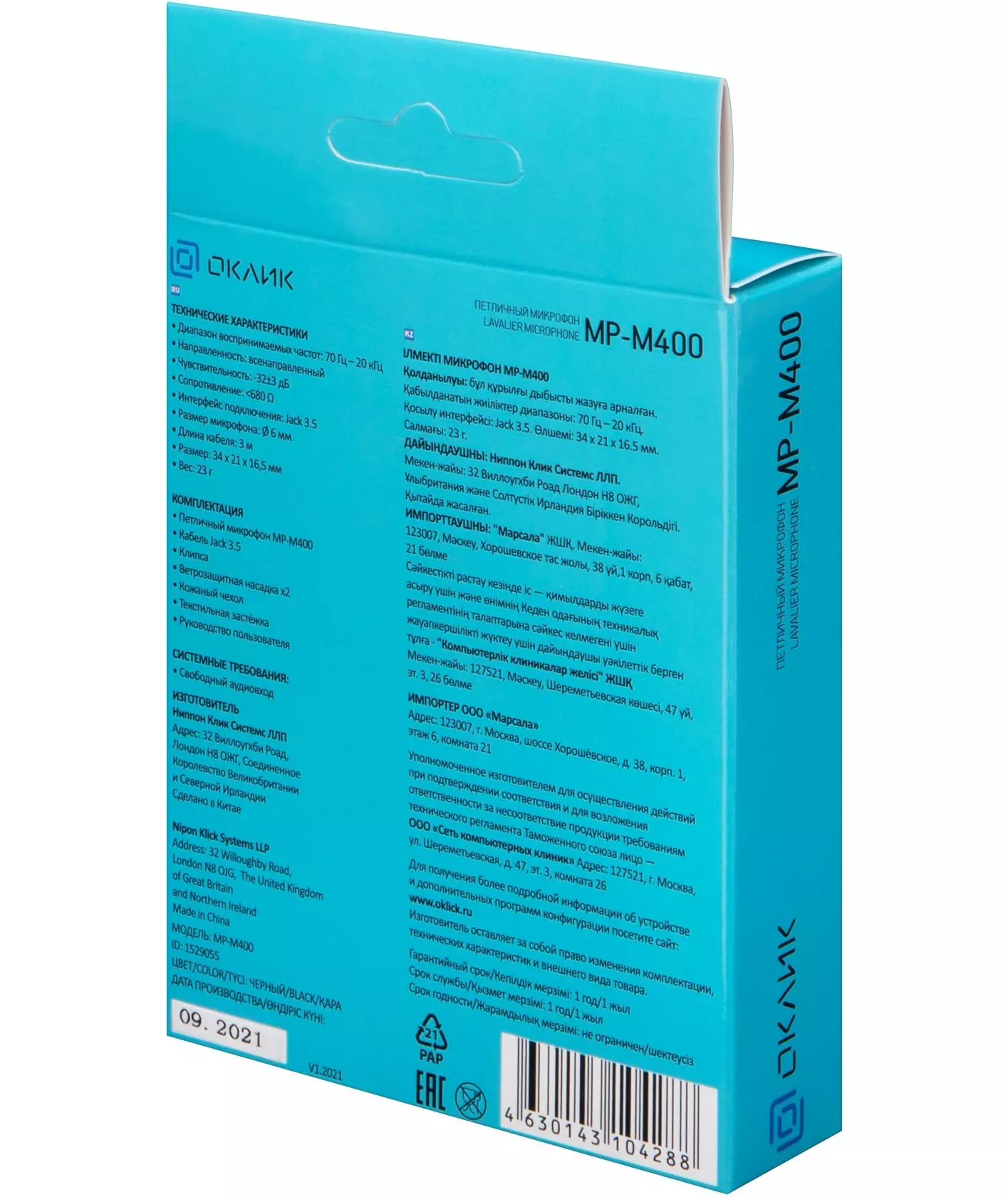 | Особенности | Петличный микрофон компактен и удобен в использовании,подходит для компьютеров, ноутбуков и других мобильных устройств с 4-пиновым разъемом 3.5 мм (TRRS) и позволяет осуществлять запись высокого качества. Может использоваться для голосовой связи, интернет трансляций и караоке на мобильном устройстве |
