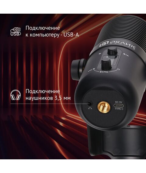 Микрофон проводной Oklick SM-400G USB-A 2м черный [1933536]