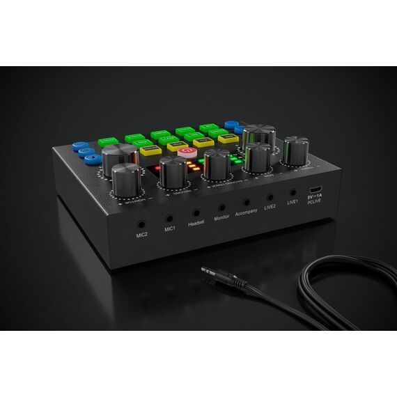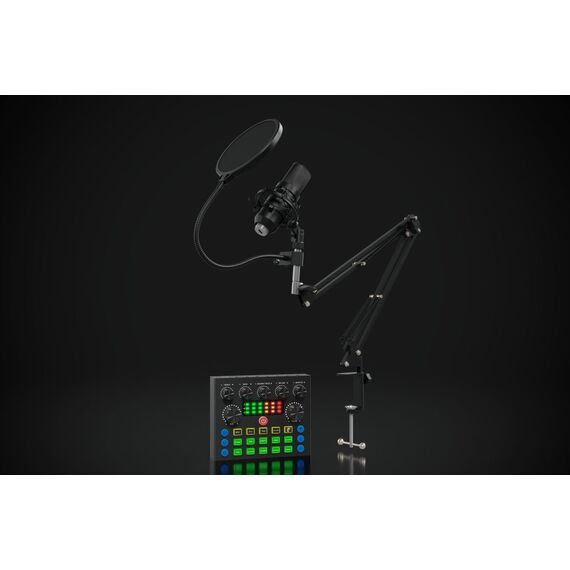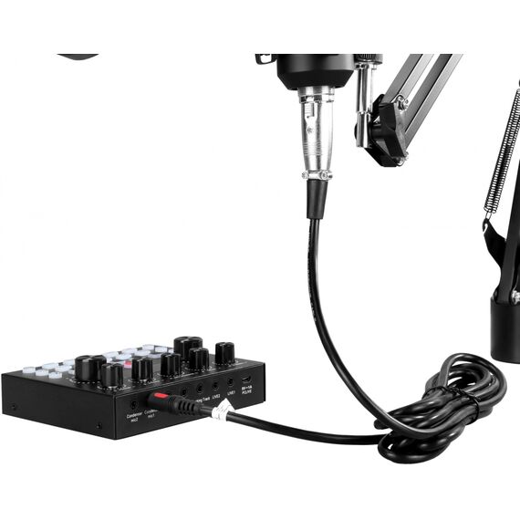 | Особенности | Микрофон для стриминга, подкастов, трансляций и конференций. Пантограф со струбциной, поп-фильтр и ветрозащита в комплекте. В комплектацию входит микшер с функциями эквалайзера, аудиоэффектов, с поддержкой BlueTooth. Микшер позволяет "на лету" обрабатывать сигнал, используя многочисленные функции. |
