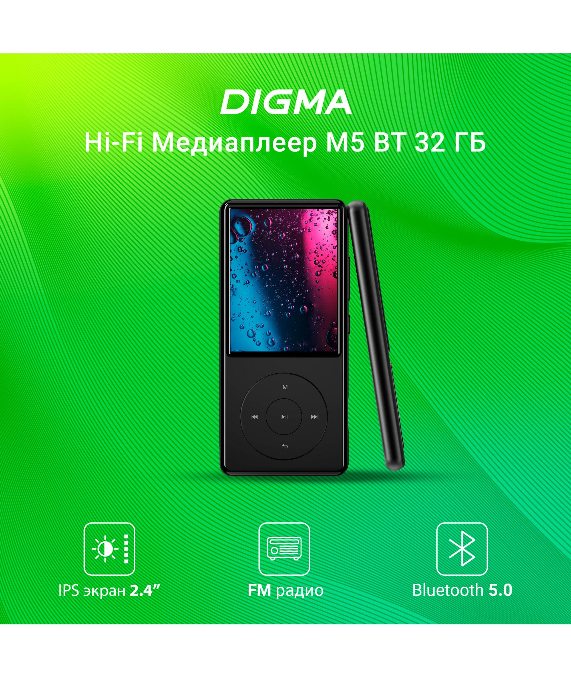 Flash-плеер Digma M5 BT 32Gb черный/2.4"/FM/microSD/microSDHC