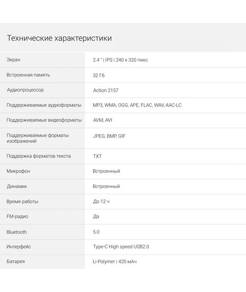 | Поддержка аудио форматов | MP3, WMA, OGG, APE, FLAC, WAV, AAC-LC |