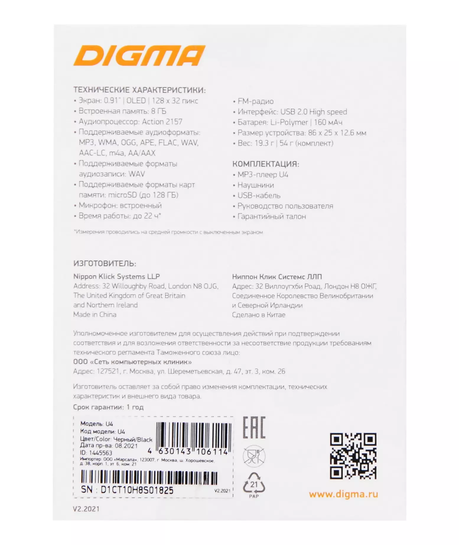 Описание Digma U4 8Gb [U4]