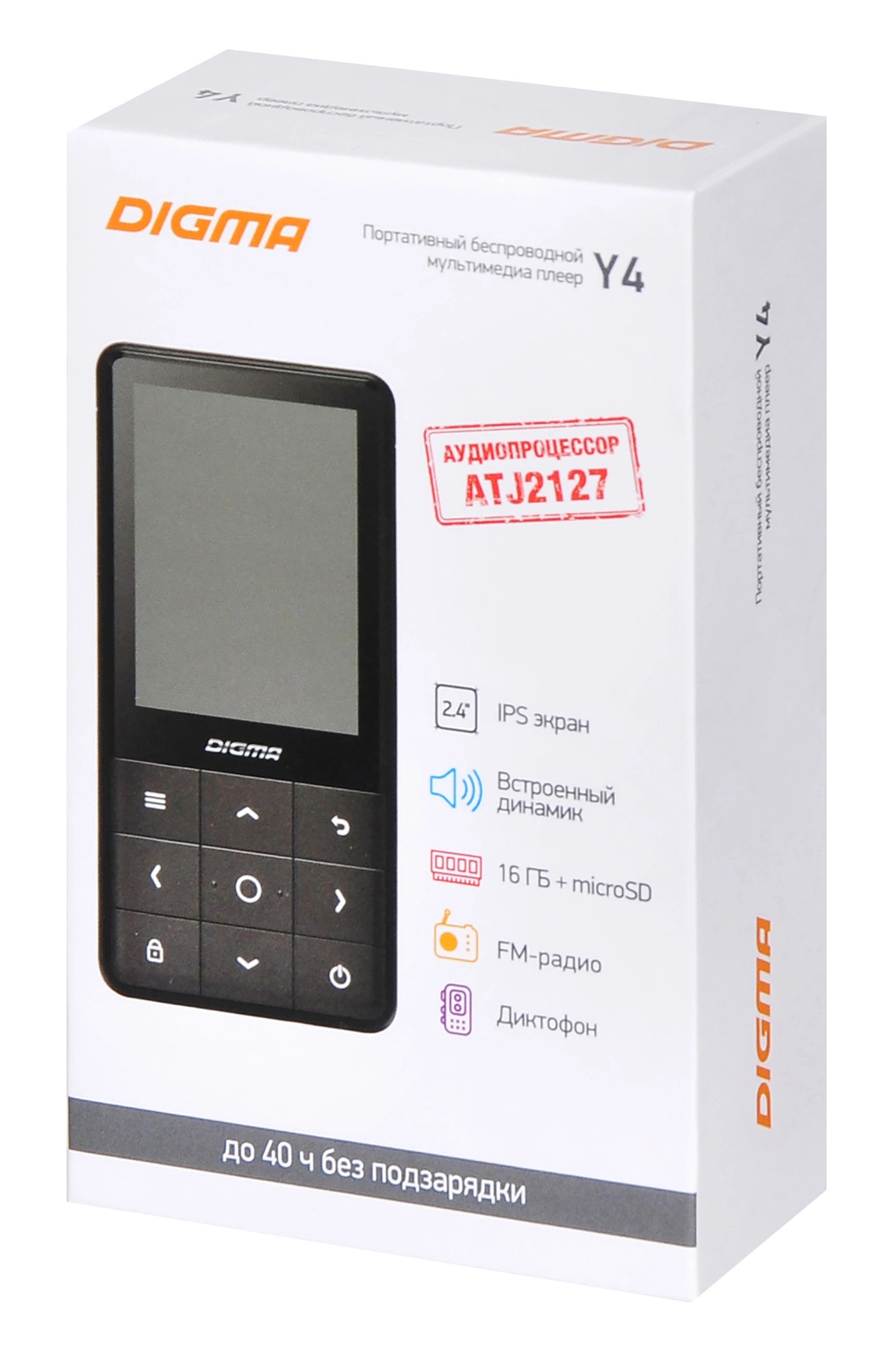 Flash-плеер Digma Y4 BT 16Gb черный/2.4"/FM/microSDHC