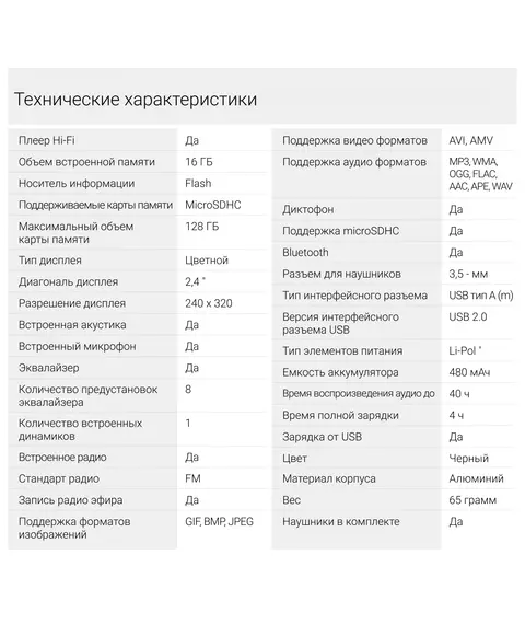 | Поддержка аудио форматов | MP3, WMA, OGG, FLAC, AAC, APE, WAV |