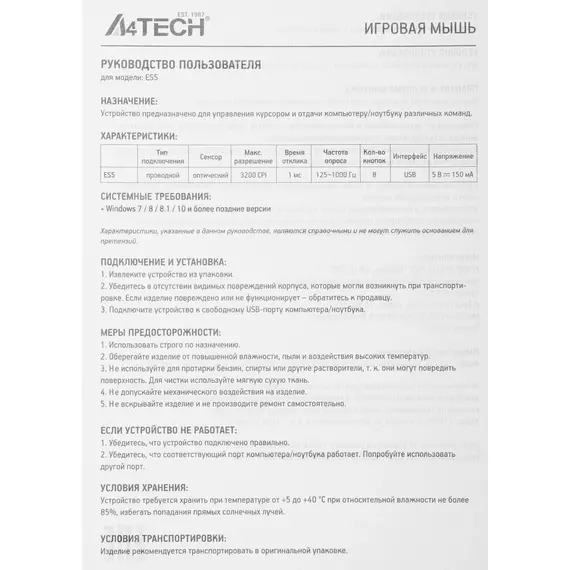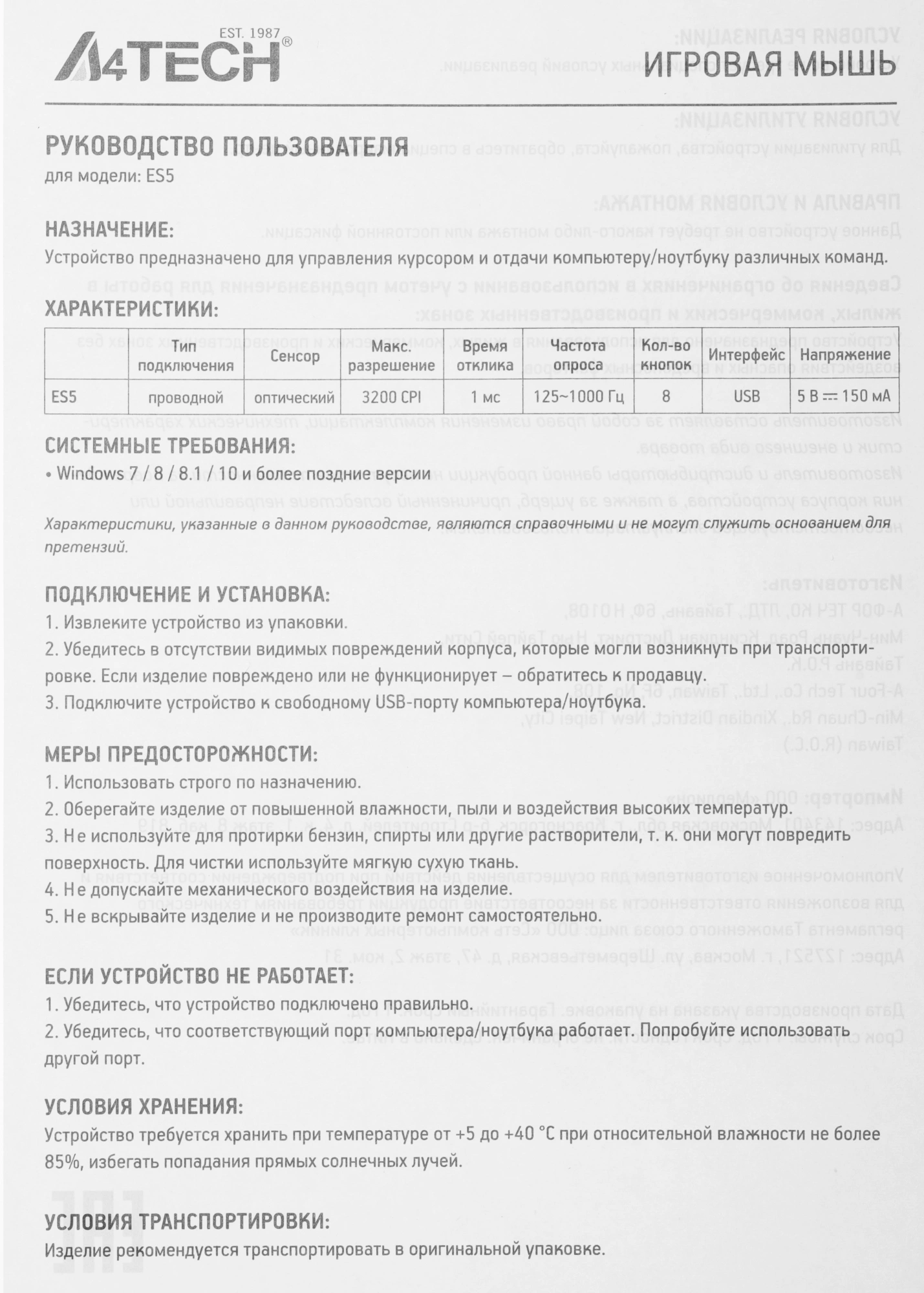 | Поддержка разрешений | 1000/1200/1600/2000/3200 dpi |