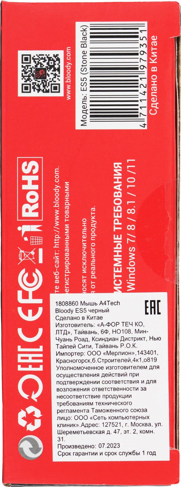 Мышь A4-Tech Bloody ES5 черный оптическая 3200dpi USB 8but