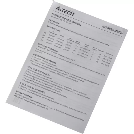 | Частота опроса USB порта | 125-2000 Гц |