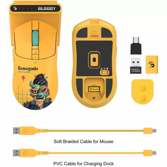 Мышь A4-Tech Bloody R72 Ultra Duo Renegade Sunset желтый/рисунок оптическая 20000dpi беспров. USB/USB-C 6but [R72 ULTRA DUO]