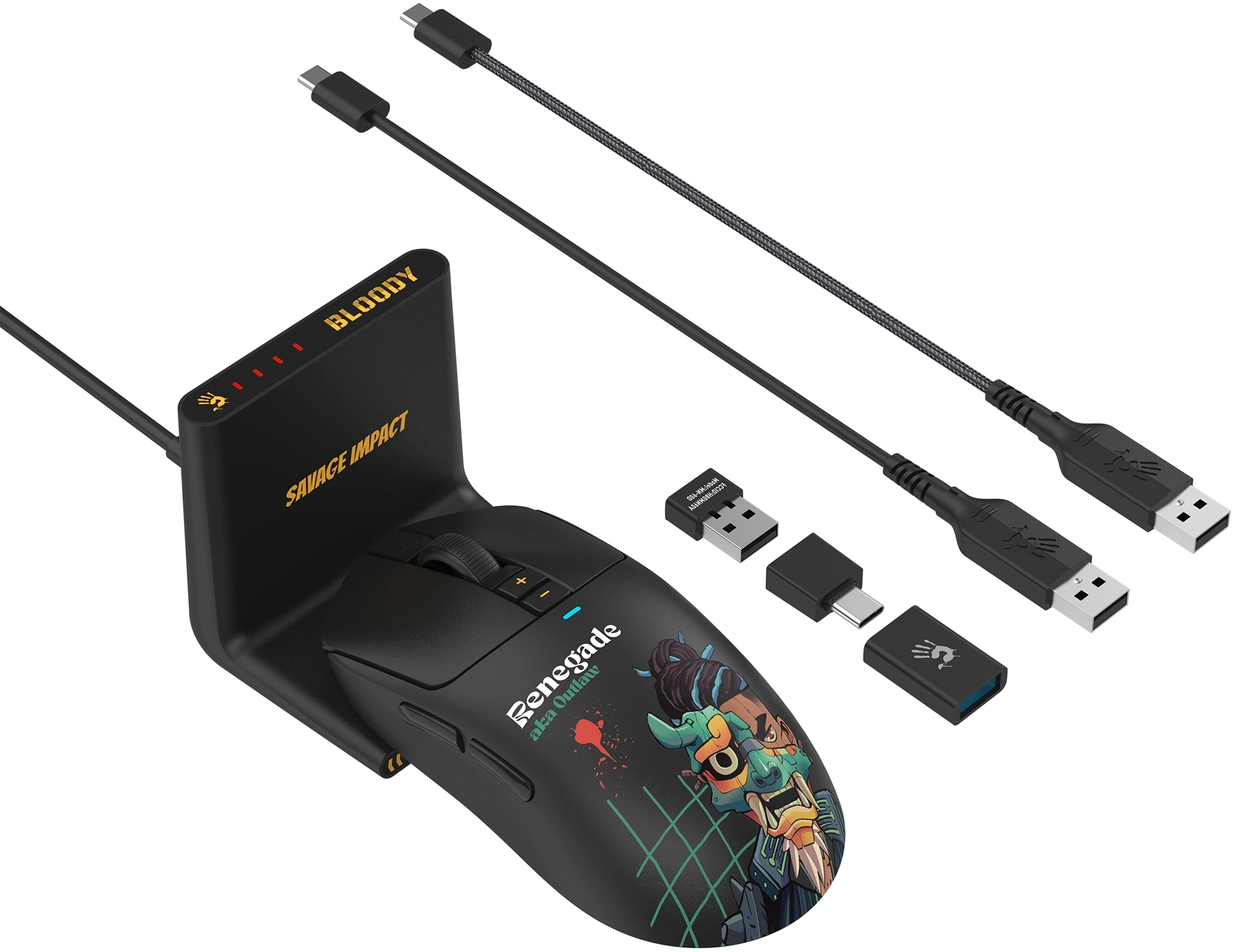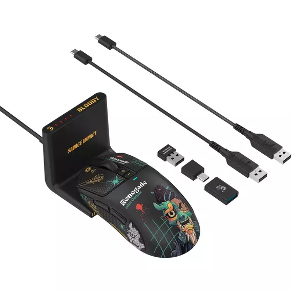 Мышь A4-Tech Bloody R72 Ultra Duo черный/рисунок оптическая 20000dpi беспров. USB/USB-C 6but RTL [R72 ULTRA DUO RENEGADEMIDNIGHT]