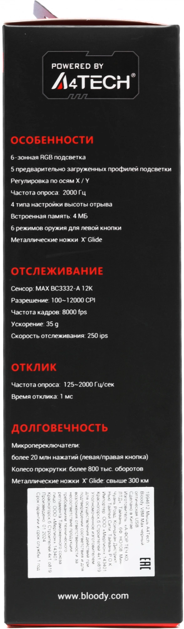 Мышь A4-Tech Bloody V8M MAX черный оптическая 12000dpi USB 8but