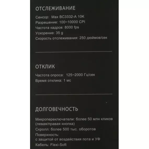 | Разрешение сенсора, макс. | 10000 dpi |