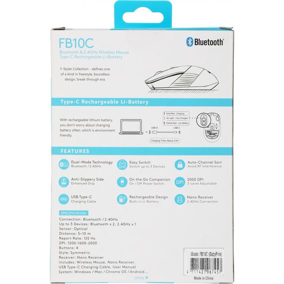 Мышь A4-Tech Fstyler FB10C розовый оптическая 2000dpi беспров. BT/Radio USB 4but [FB10C BABY PINK]