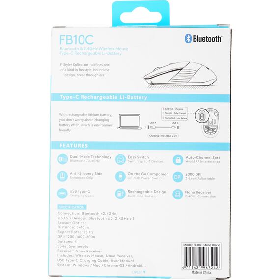 Мышь A4-Tech Fstyler FB10C STONE BLACK черный оптическая 2000dpi беспров. BT/Radio USB 4but