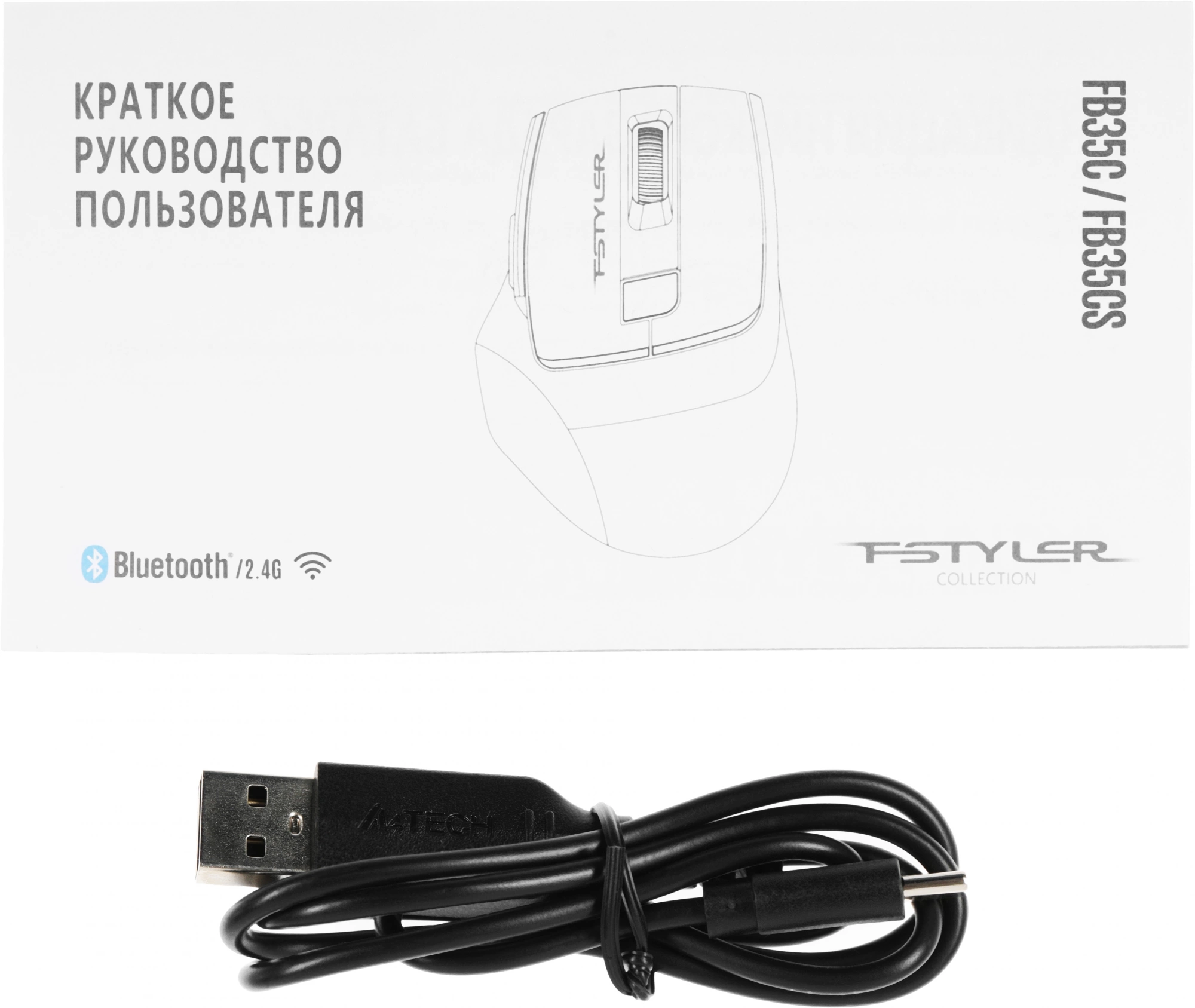 Мышь A4-Tech Fstyler FB35C ICY WHITE белый оптическая 2000dpi беспров. BT/Radio USB 6but [FB35C]