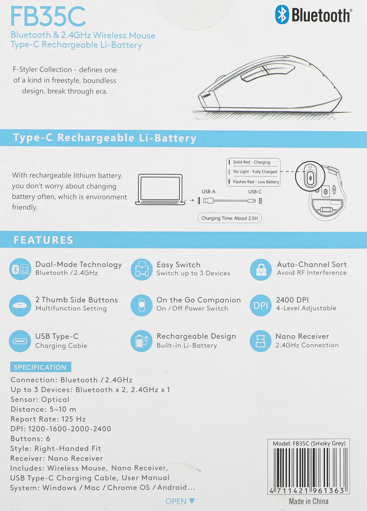 Описание A4-Tech Fstyler FB35C SMOKY GREY