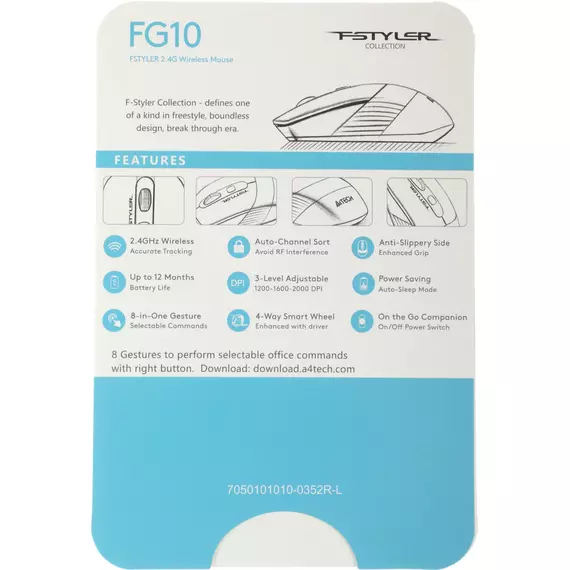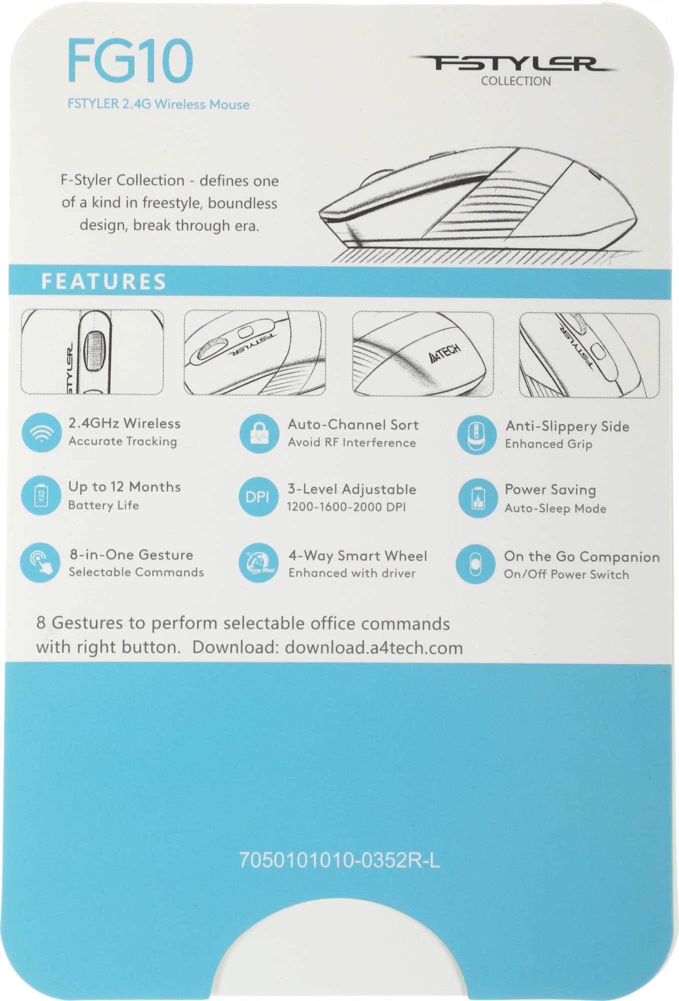 Мышь A4-Tech Fstyler FG10 WHITE белый/серый оптическая 2000dpi беспров. USB 3but