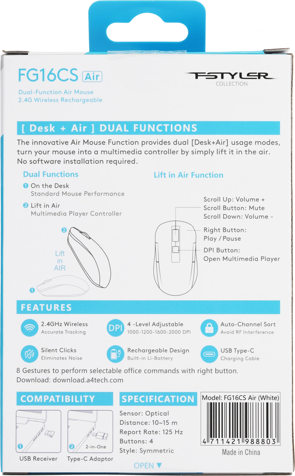Описание A4-Tech Fstyler FG16CS Air WHITE