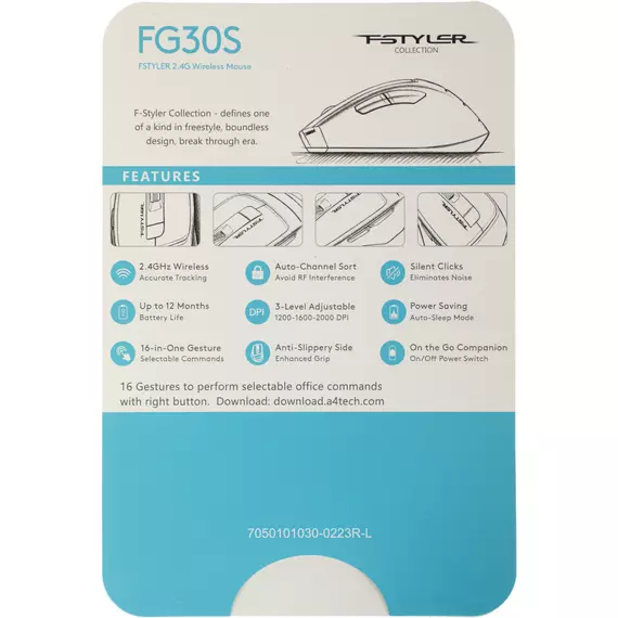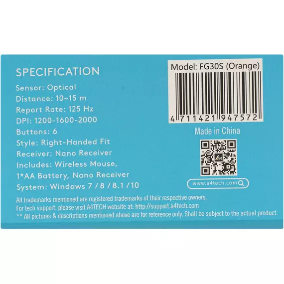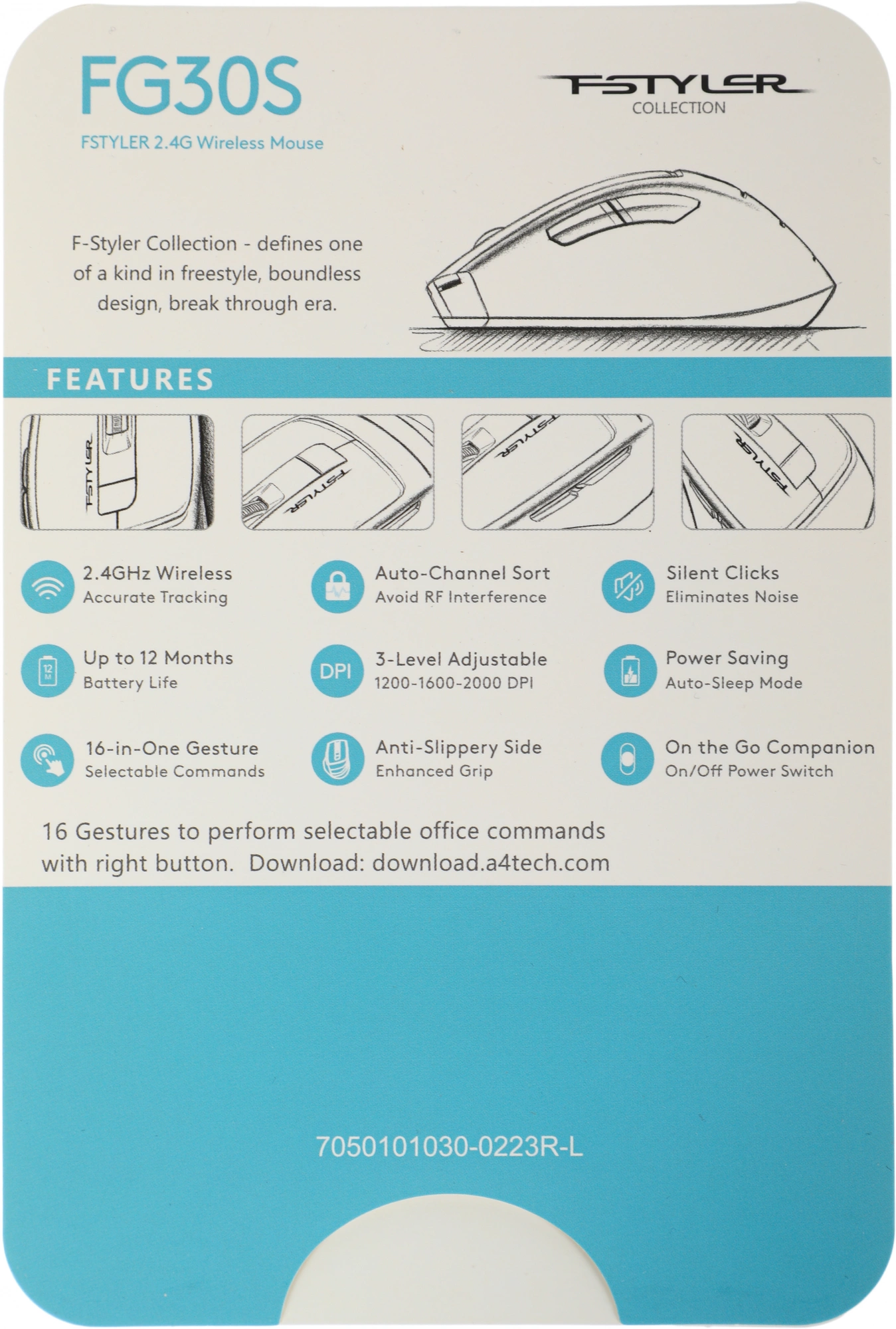 Мышь A4-Tech Fstyler FG30S ORANGE серый/оранжевый оптическая 2000dpi silent беспров. USB 6but