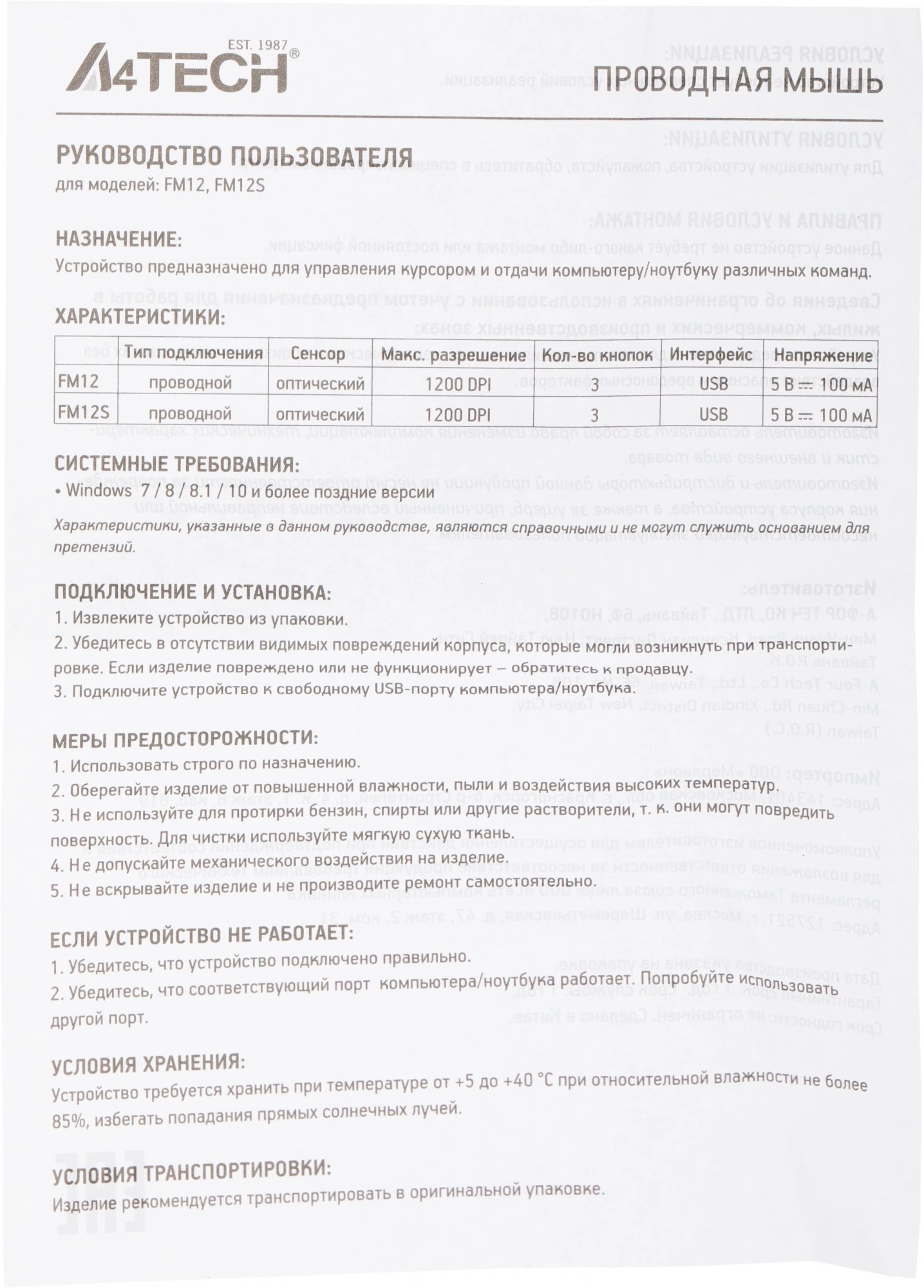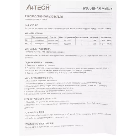Описание A4-Tech Fstyler FM12 PANDA