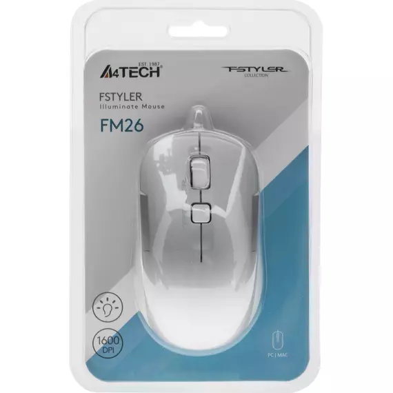 Мышь A4-Tech Fstyler FM26 ICY WHITE серебристый/белый оптическая 1600dpi USB для ноутбука 4but