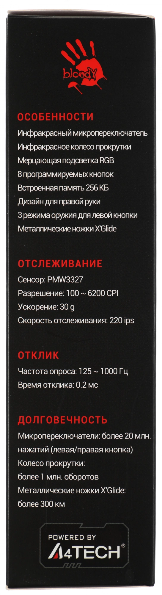Наличие товара A4-Tech Мышь A4Tech Bloody A90 черный оптическая 6200dpi USB 8but [A90]