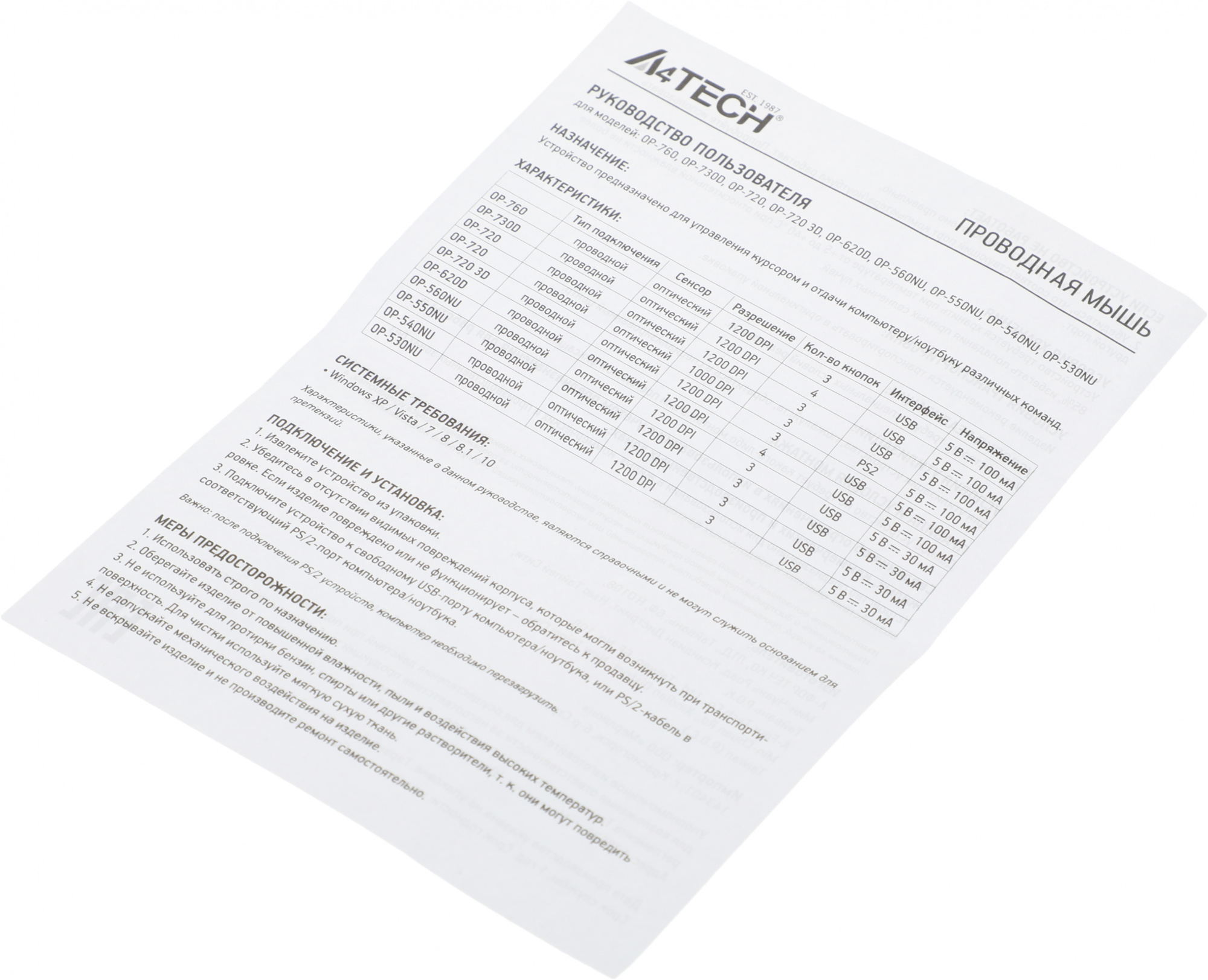 Мышь A4-Tech OP-530NU черный оптическая 1200dpi USB 2but