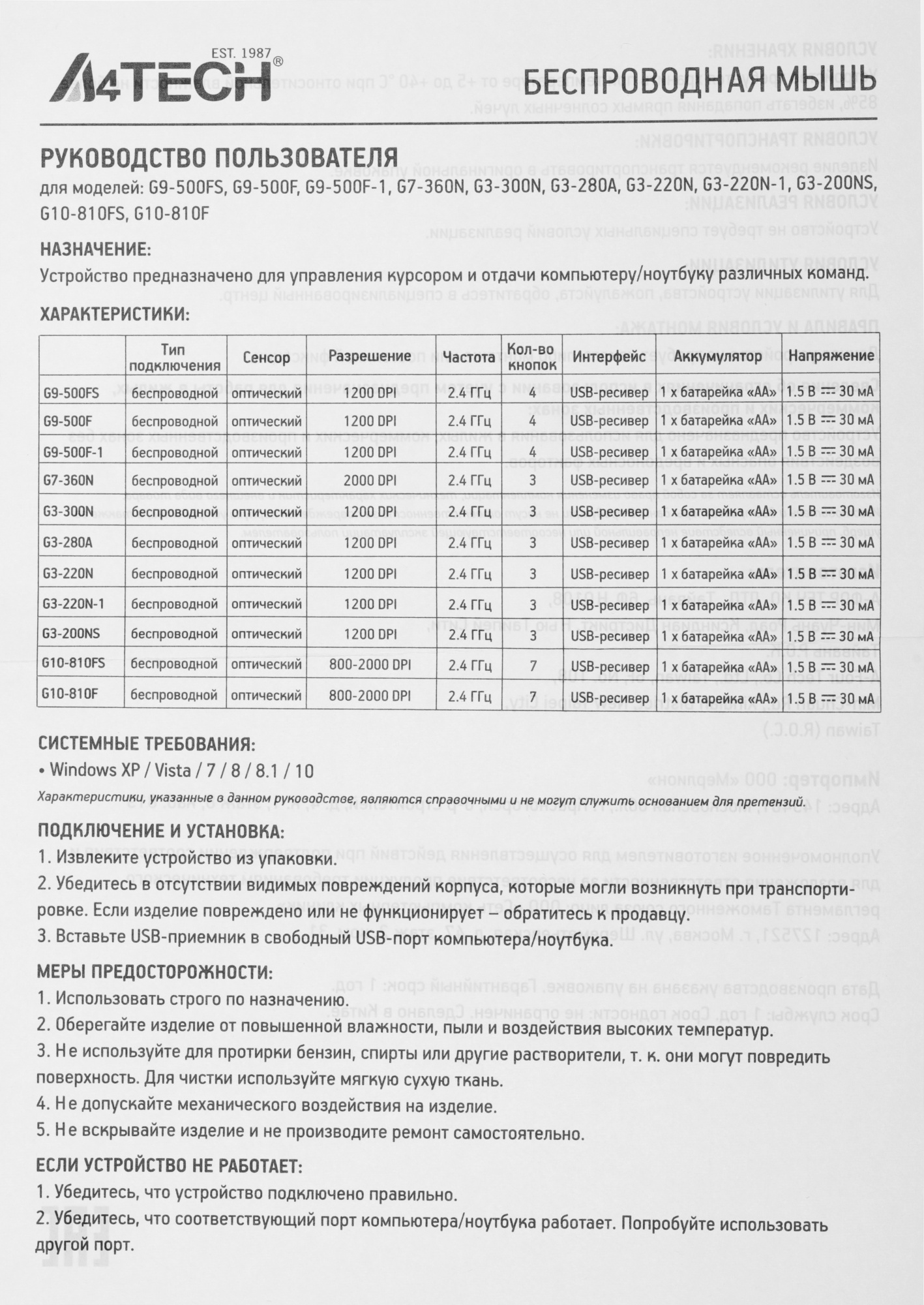 Описание A4-Tech V-Track G3-200NS