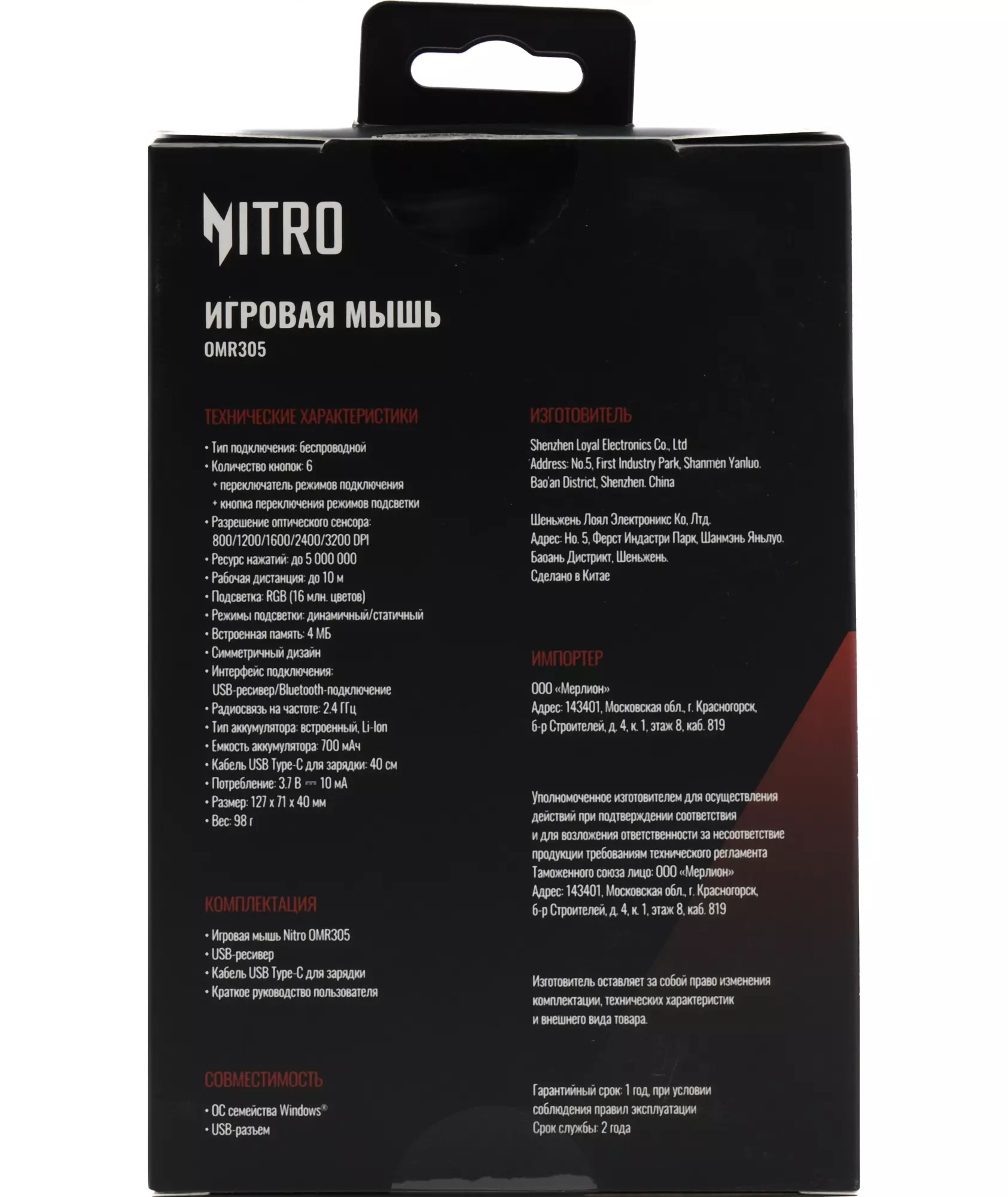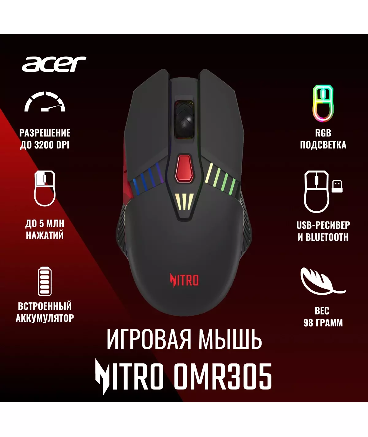 Мышь Acer Nitro OMR305 черный оптическая 3200dpi беспров. BT/Radio USB 6but [ZL.MCECC.020]