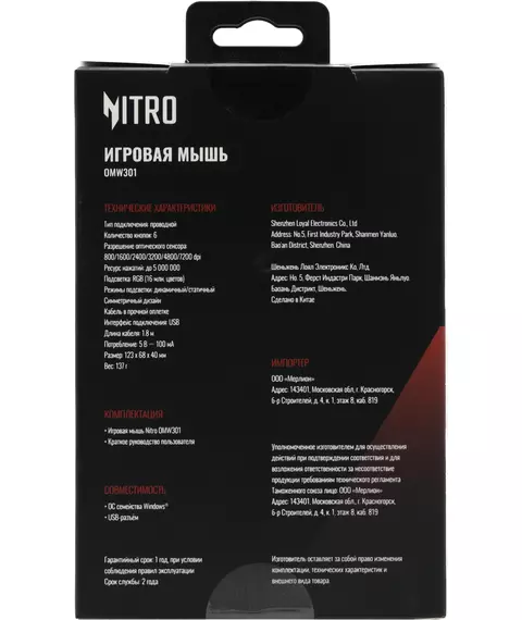 | Размеры мыши | 68x123x40мм |
