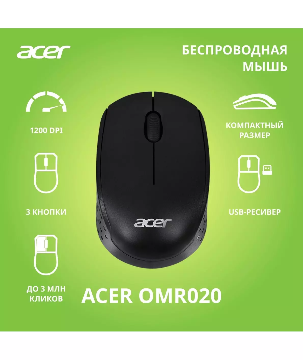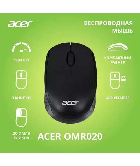 Мышь Acer OMR020 черный оптическая 1200dpi беспров. USB для ноутбука 3but [ZL.MCEEE.006]