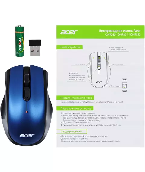 Мышь Acer OMR031 черный/синий оптическая 1600dpi беспров. USB 4but [ZL.MCEEE.008]