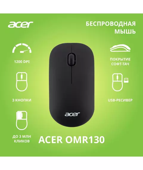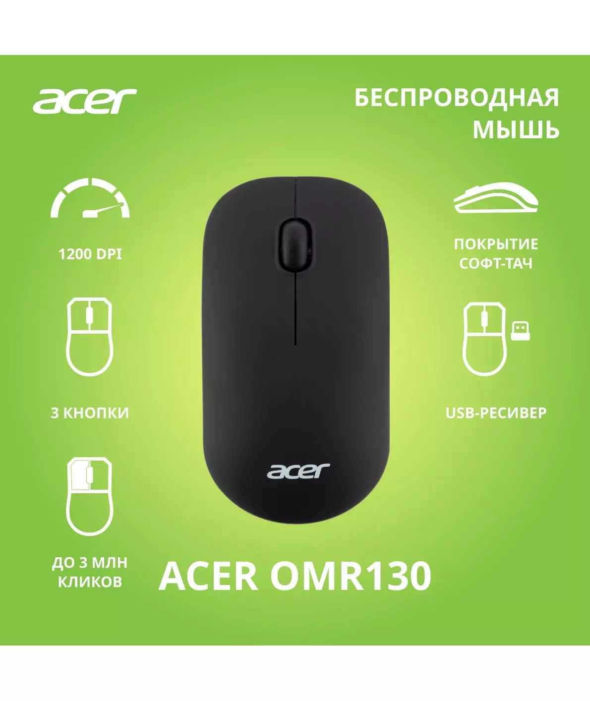 Мышь Acer OMR130 черный оптическая 1200dpi беспров. USB 3but [ZL.MCEEE.00F]