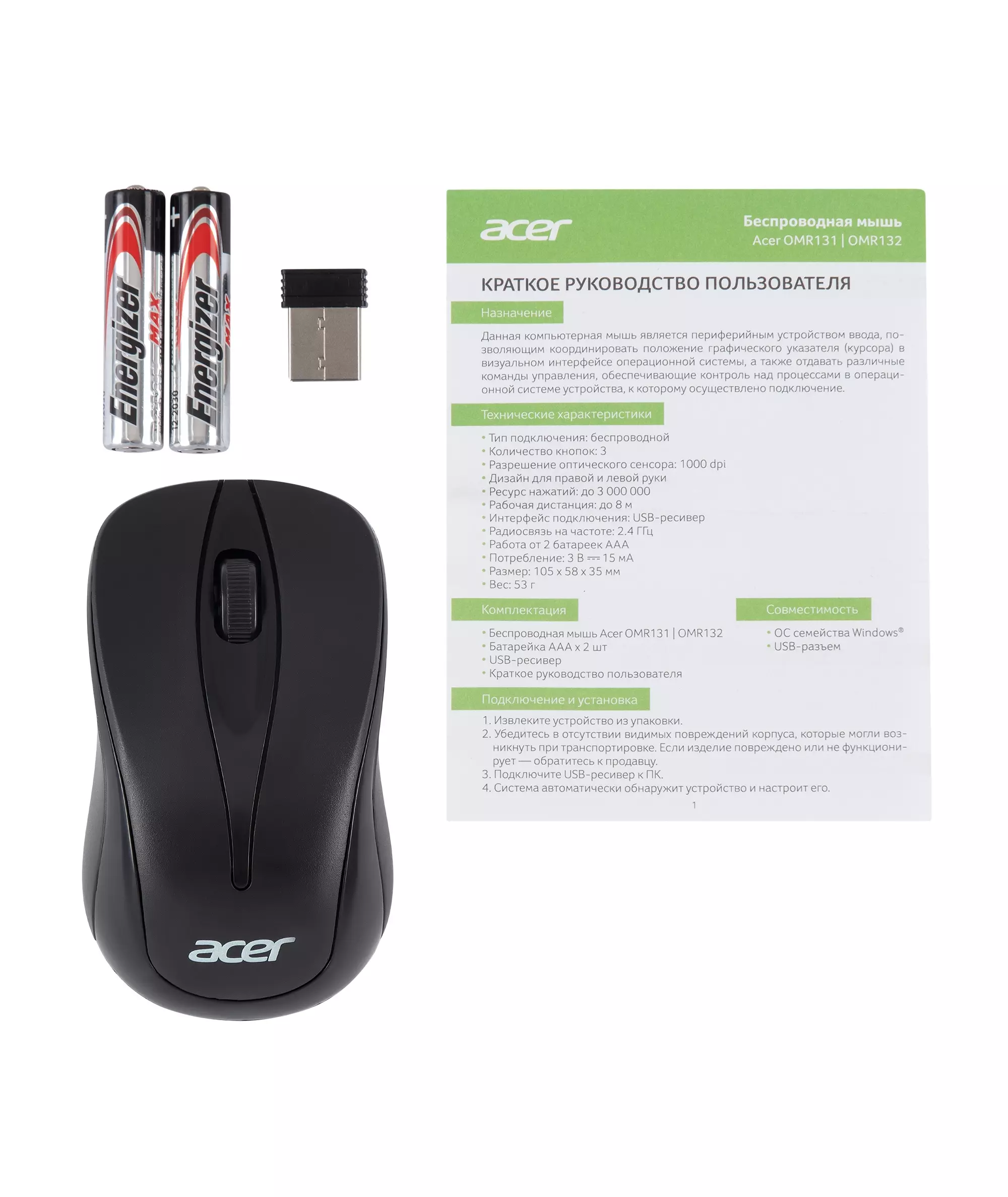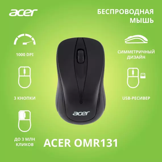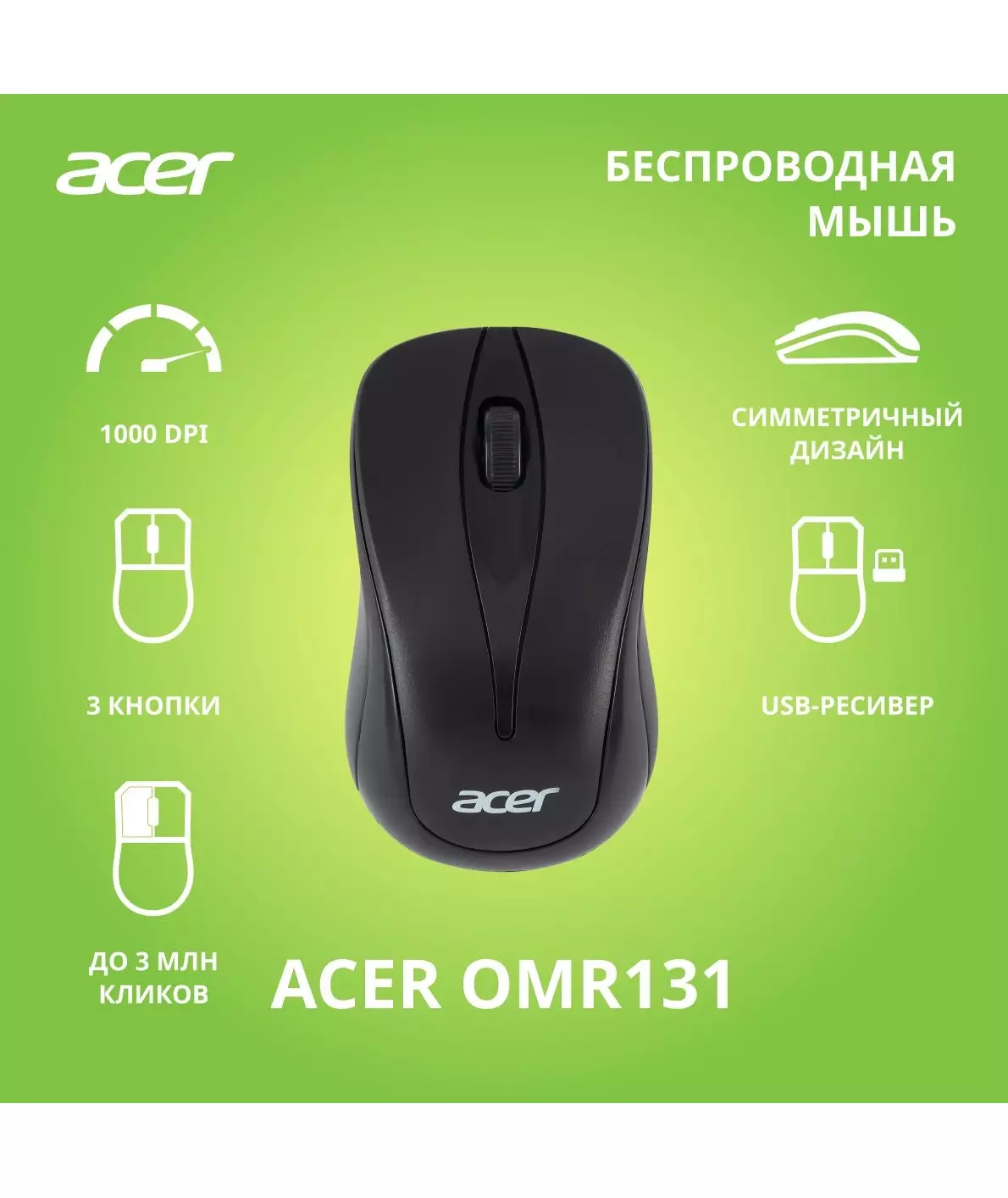 Мышь Acer OMR131 черный оптическая 1000dpi беспров. USB для ноутбука 2but [ZL.MCEEE.01E]