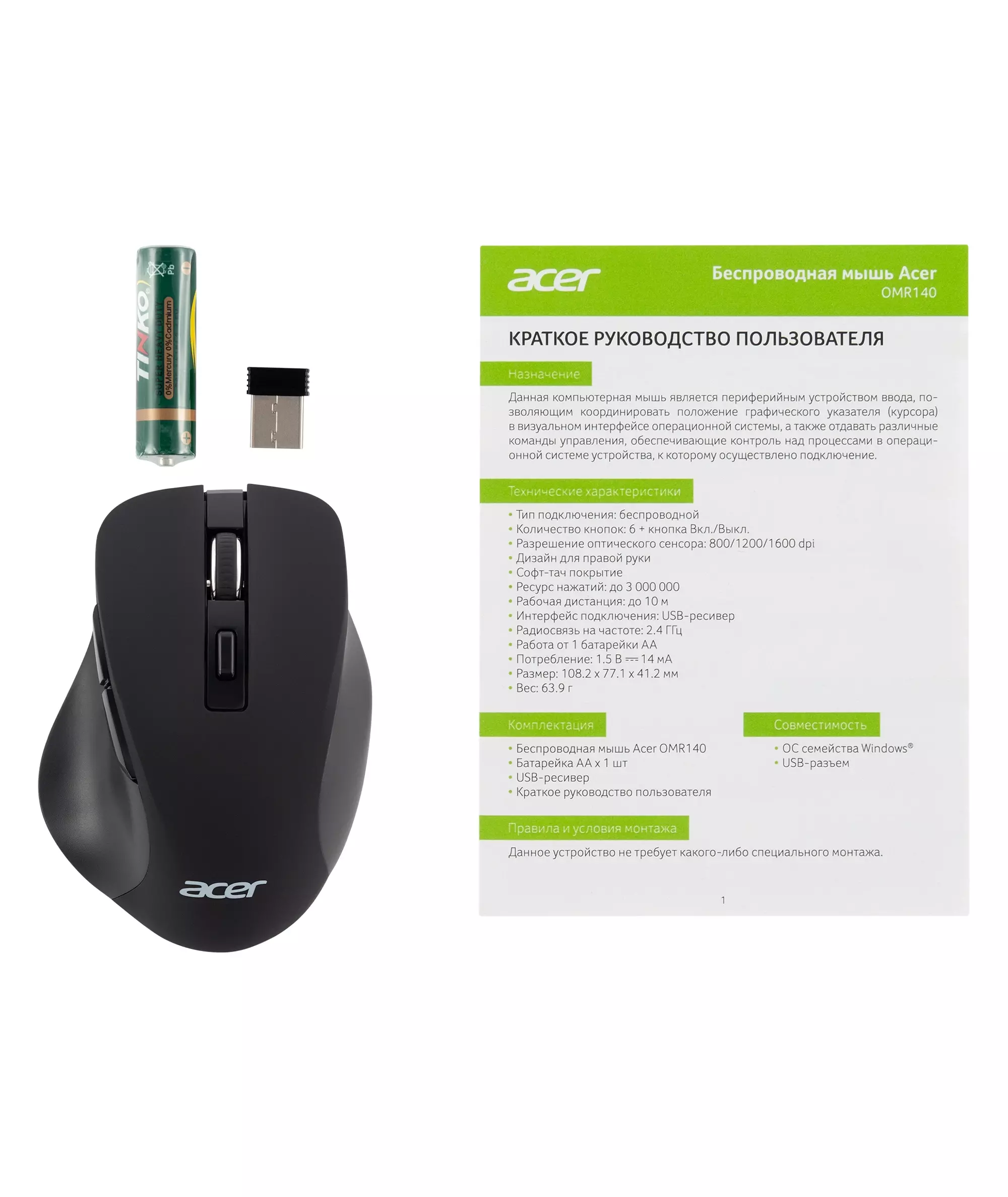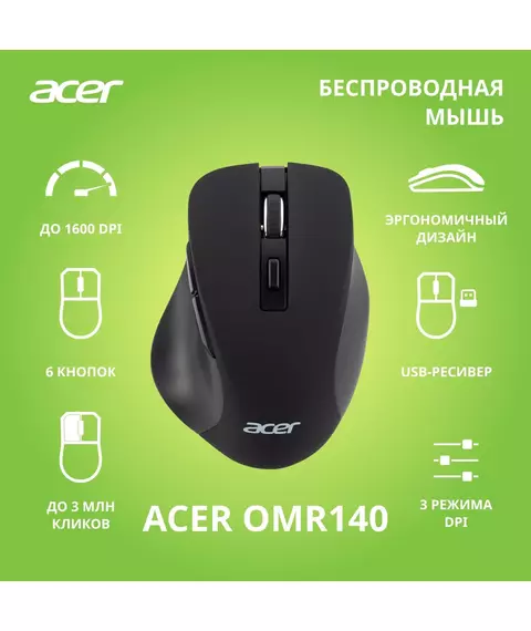 Мышь Acer OMR140 черный оптическая 1600dpi беспров. USB 6but [ZL.MCEEE.00G]