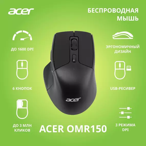 Мышь Acer OMR150 черный оптическая 1600dpi беспров. USB 6but [ZL.MCEEE.00K]