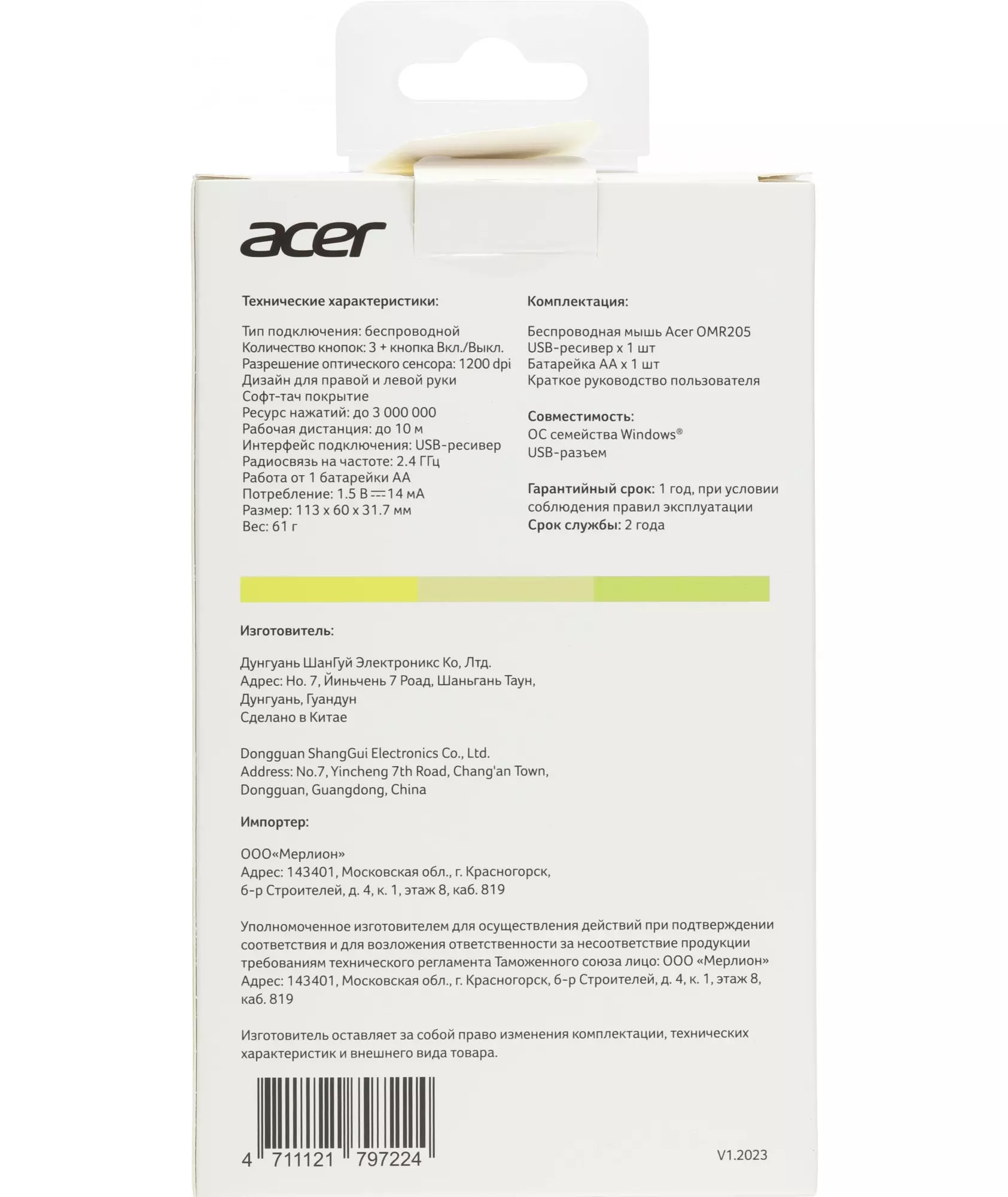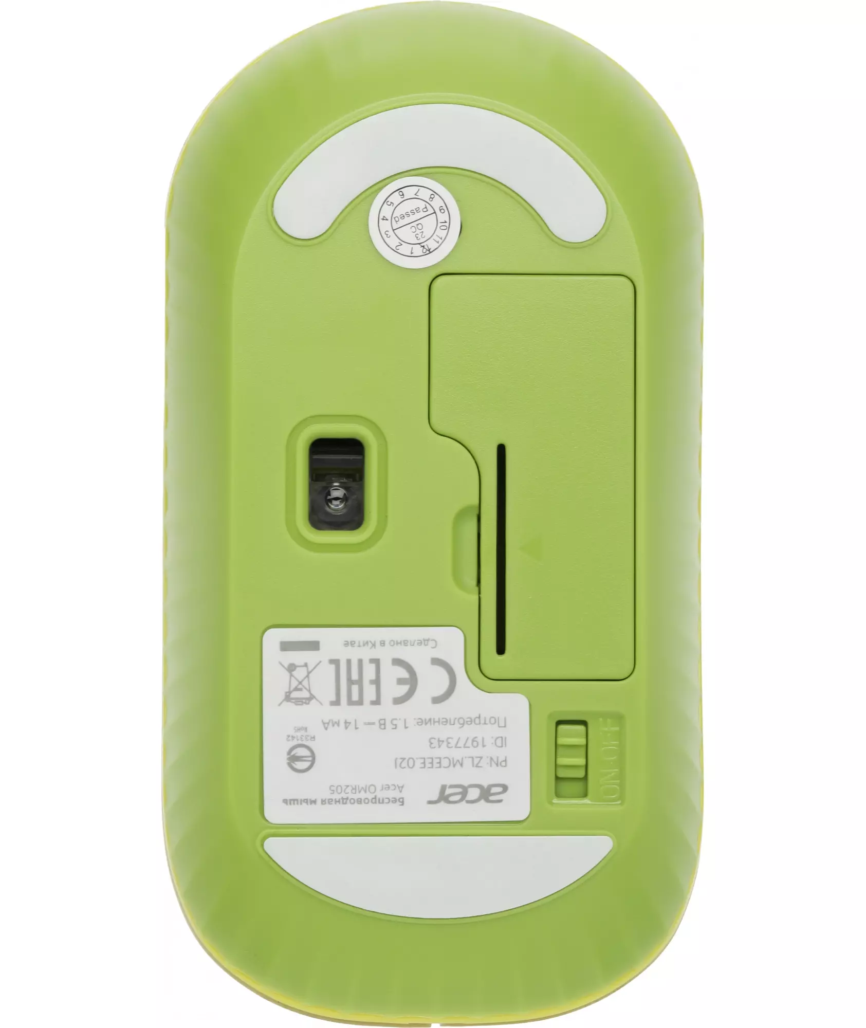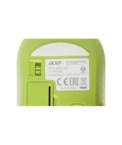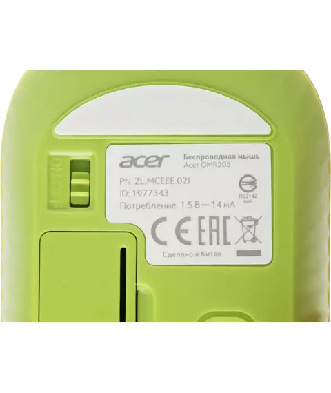 Мышь Acer OMR205 оптическая 1200dpi беспров. USB для ноутбука 3but зеленый/желтый [ZL.MCEEE.02J]