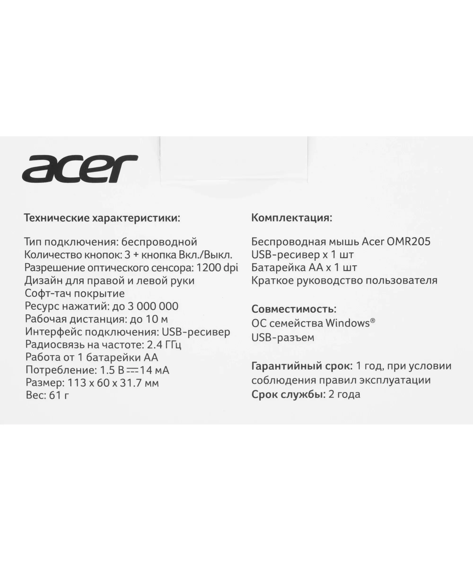 Описание Acer OMR205 [ZL.MCEEE.02J]