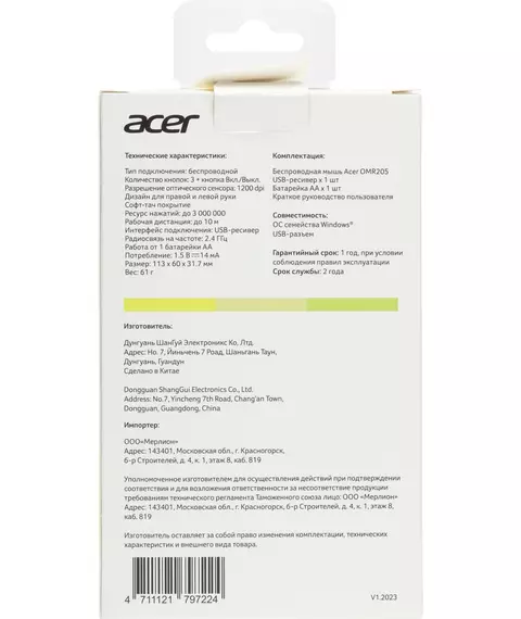 Наличие товара Acer OMR205 [ZL.MCEEE.02J]