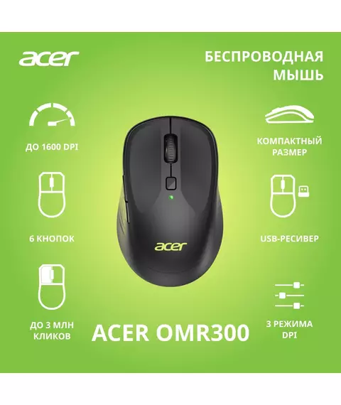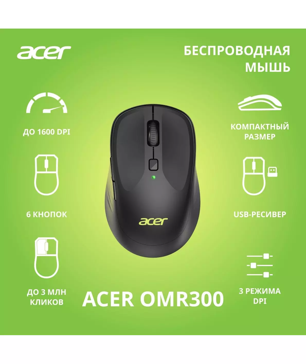 Мышь Acer OMR300 черный оптическая 1600dpi беспров. USB 6but [ZL.MCECC.01R]