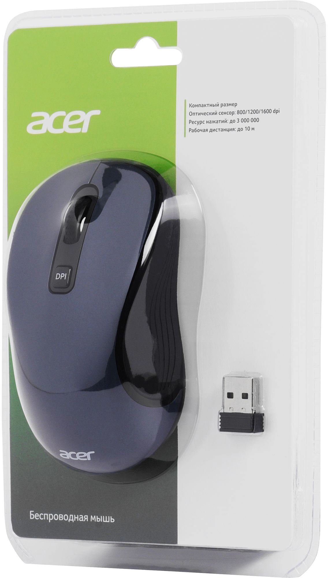 Мышь Acer OMR306 черный/серый оптическая 1600dpi беспров. USB 6but [ZL.MCECC.021]